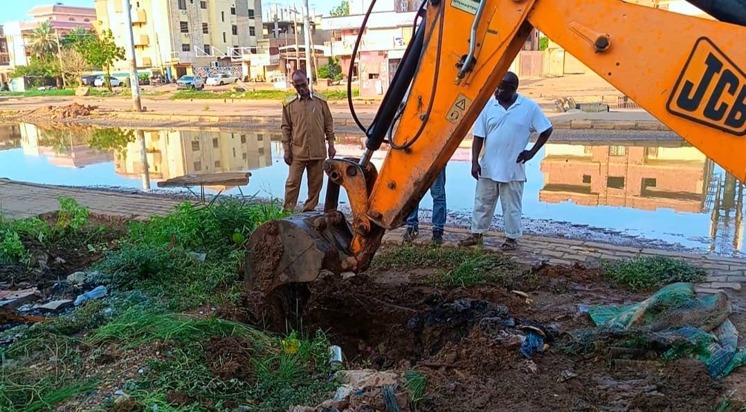 ووقف المدير التنفيذي لمحلية الخرطوم، عبد المنعم البشير، برفقة مدير مصارف الخرطوم بوزارة البنى التحتية بالولاية، المهندس محمد طه، على المعالجات الجارية لتصريف تراكمات مياه الأمطار بالشارع، والتي تسببت فيها إغلاق المنهولات بالمصرف الرئيسي غرب الطريق بفعل تراكمات الأنقاض المخلفة أثناء فترة الحرب، بجانب التعديات الهندسية على المصرف بفعل مخالفات بعض المواطنين.