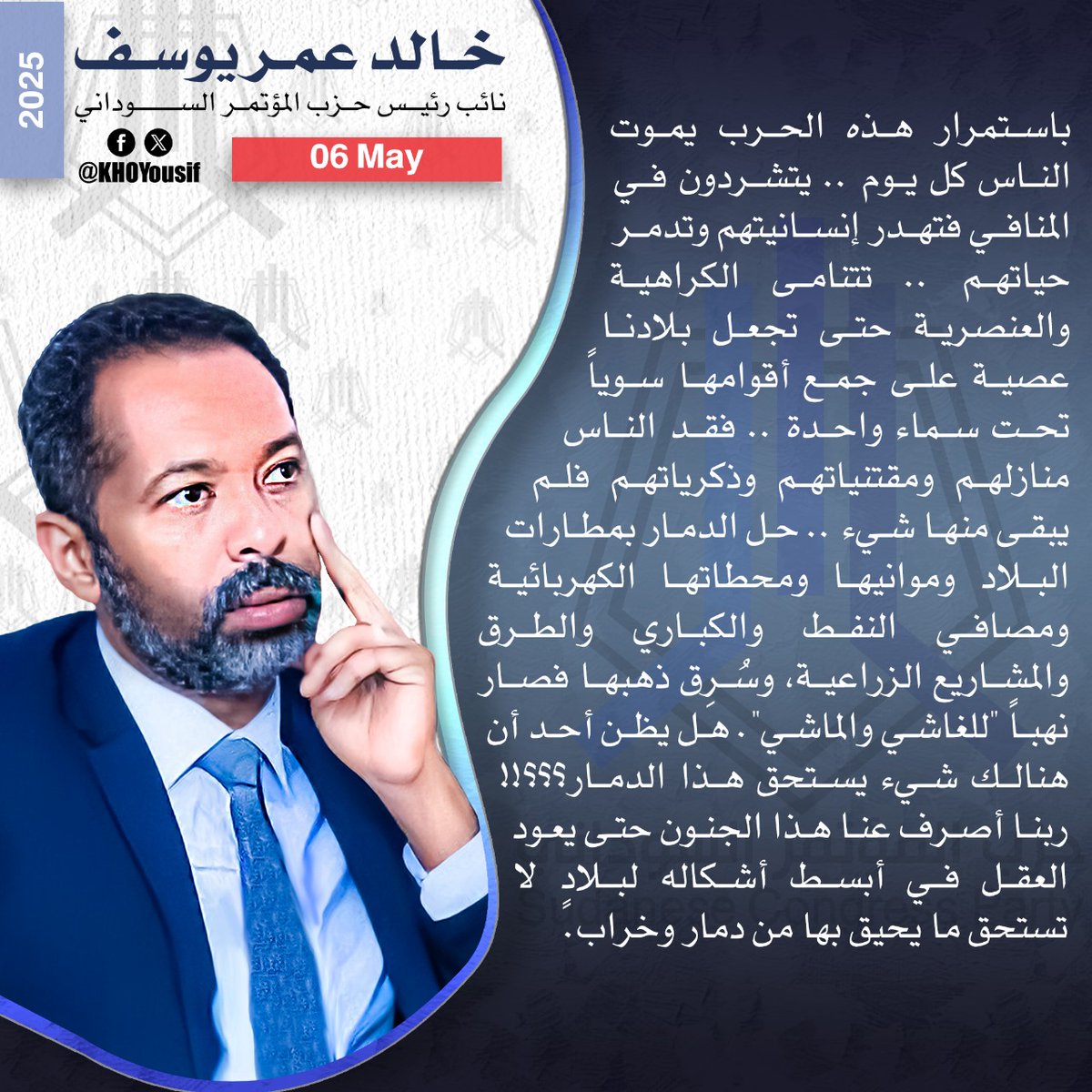 م.خالد عمر يوسف @KHOYousif نائب رئيس الحزب والقيادي في التحالف المدني الديمقراطي لقوى الثورة (صمود)