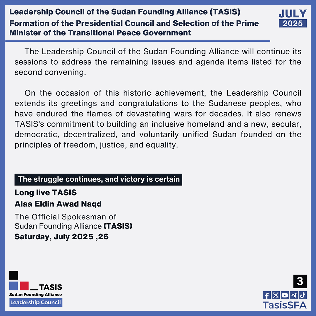 Leadership Council of the Sudan Founding Alliance (TASIS) Formation of the Presi…
