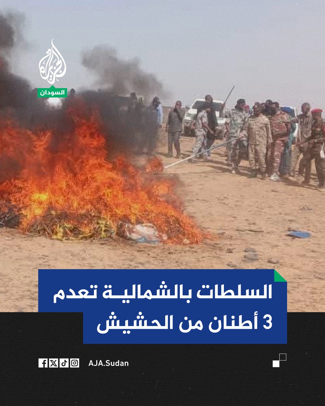 والي الولاية الشمالية عبد الرحمن عبد الحميد يشهد إعدام 136 ألف رأس من مخدر الحشيش، تعادل 3 أطنان، ضبطتها شرطة مكافحة التهريب بمدينة كريمة التي أوقفت 4 متهمين