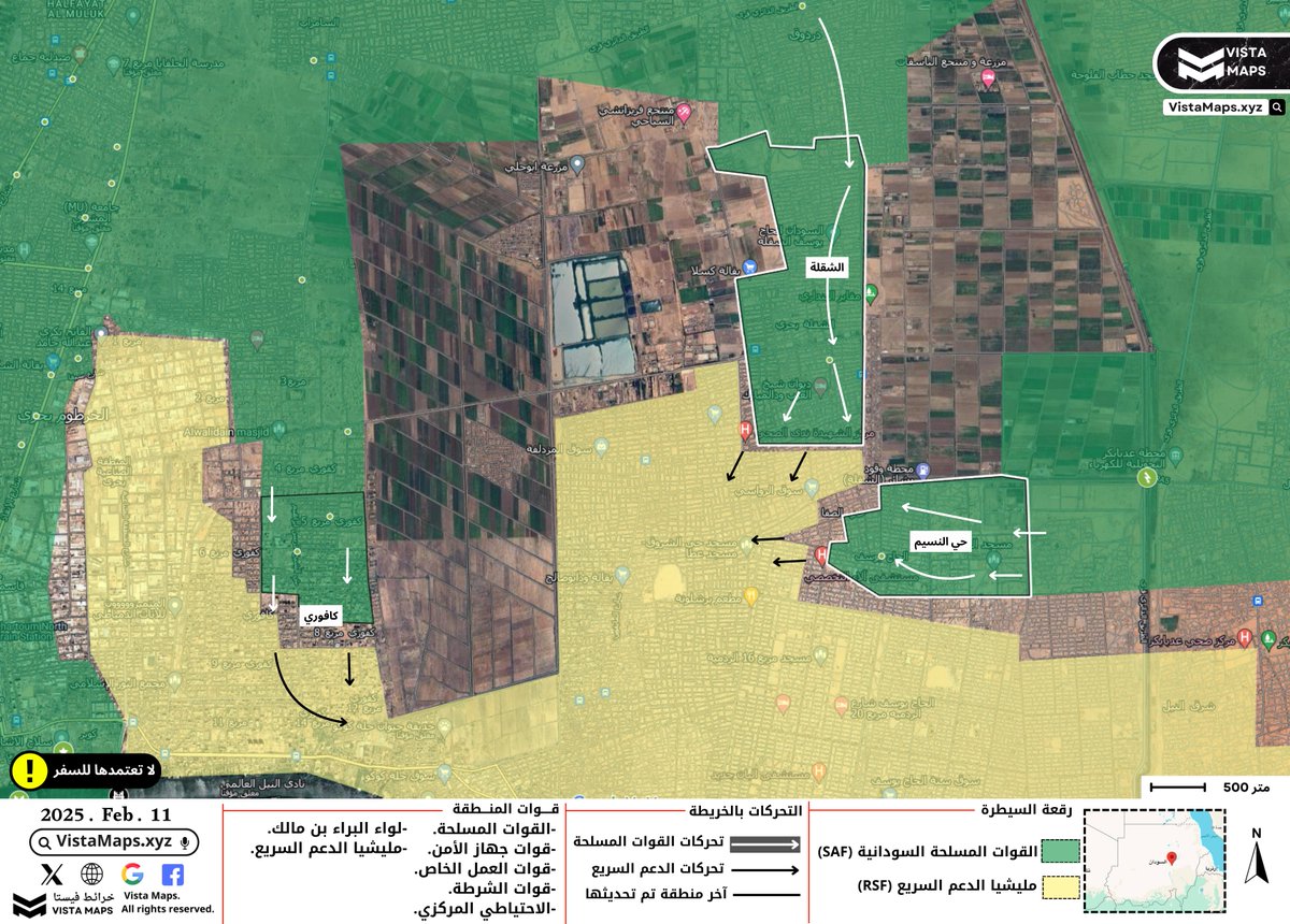 – القوات المسلحة تفرض سيطرتها على منطقة الشقلة، كما سيطرت في وقت سابق على حي النسيم بينما انسحبت مليشيا الدعم السريع إلى مناطق أخرى داخل أحياء الحاج يوسف.