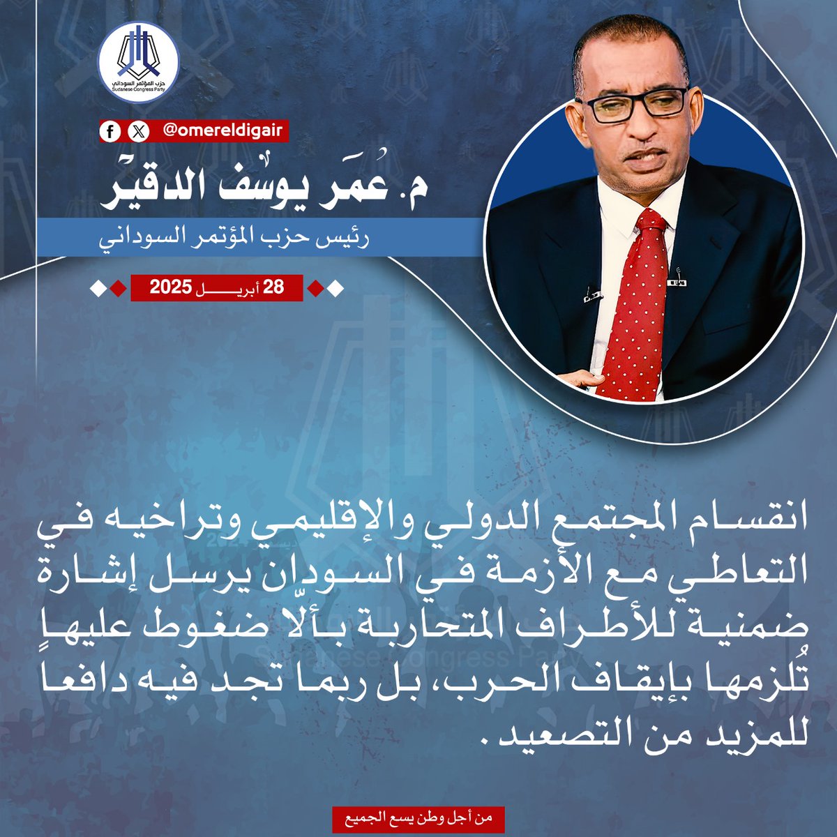 م.عمر الدقير @omereldigair رئيس الحزب