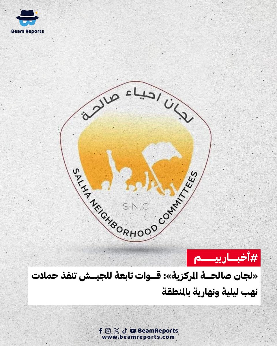قالت لجان أحياء صالحة المركزية لـ«بيم ريبورتس» إن عمليات السرقة شملت كل أحياء «صالحة»، لكنها تركزت، بدرجة أكبر، على أحياء «جادين» و«هجيليجة» غربي صالحة، وحي «القيعة» جنوبي صالحة. ولفتت إلى أن السرقات تحدث نهارًا وليلًا من قِبل قوات تتبع للجيش عبر سيارات وشاحنات كبيرة – بحسب ما ذكرت.
