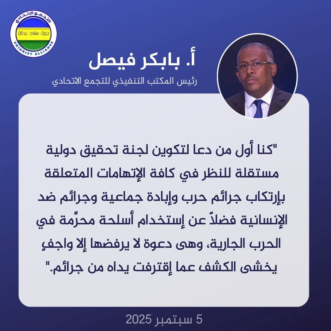 #كتب #أستاذ #بابكر_فيصل رئيس المكتب التنفيذي للتجمع الاتحادي والقيادي بتحالف صمود: