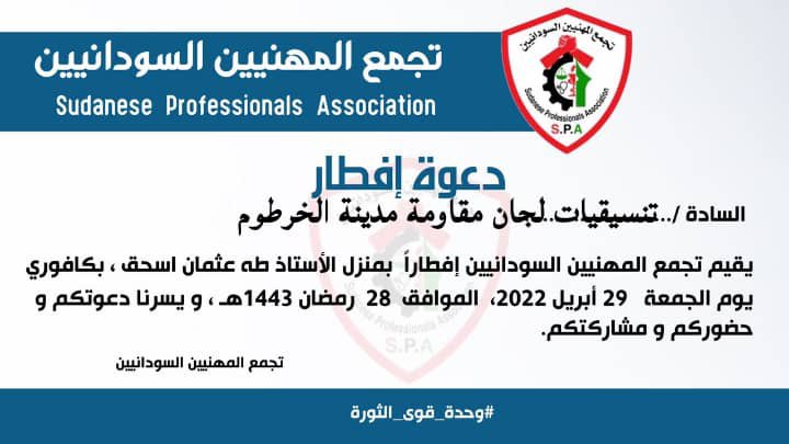 تلقينا مساء الامس دعوة من تجمع الانقلابيين بقيادة طه عثمان والاصم لحضور افطار بمنزل طه عثمان بكافوري اليوم الجمعة.