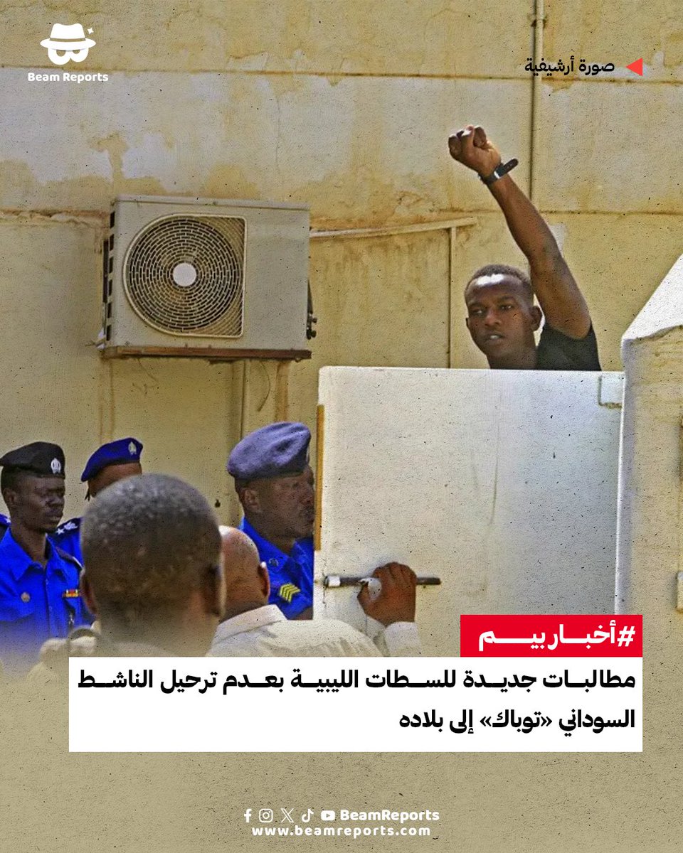 قالت منظمة (رصد الجرائم في ليبيا) والتي تنشط في رصد وتوثيق الانتهاكات وعدم الإفلات من العقاب، الخميس، إن موظفين في السفارة السودانية في العاصمة الليبية طرابلس قاموا يوم الإثنين 19 مايو الحالي باعتقال الناشط محمد آدم «توباك» (24 عامًا) من داخل مبنى السفارة، واحتجزوه قسرًا لمدة يوم كامل، قبل أن يسلموه بشكل غير قانوني إلى السلطات الليبية، مطالبة إياها بعدم ترحيله إلى بلاده.