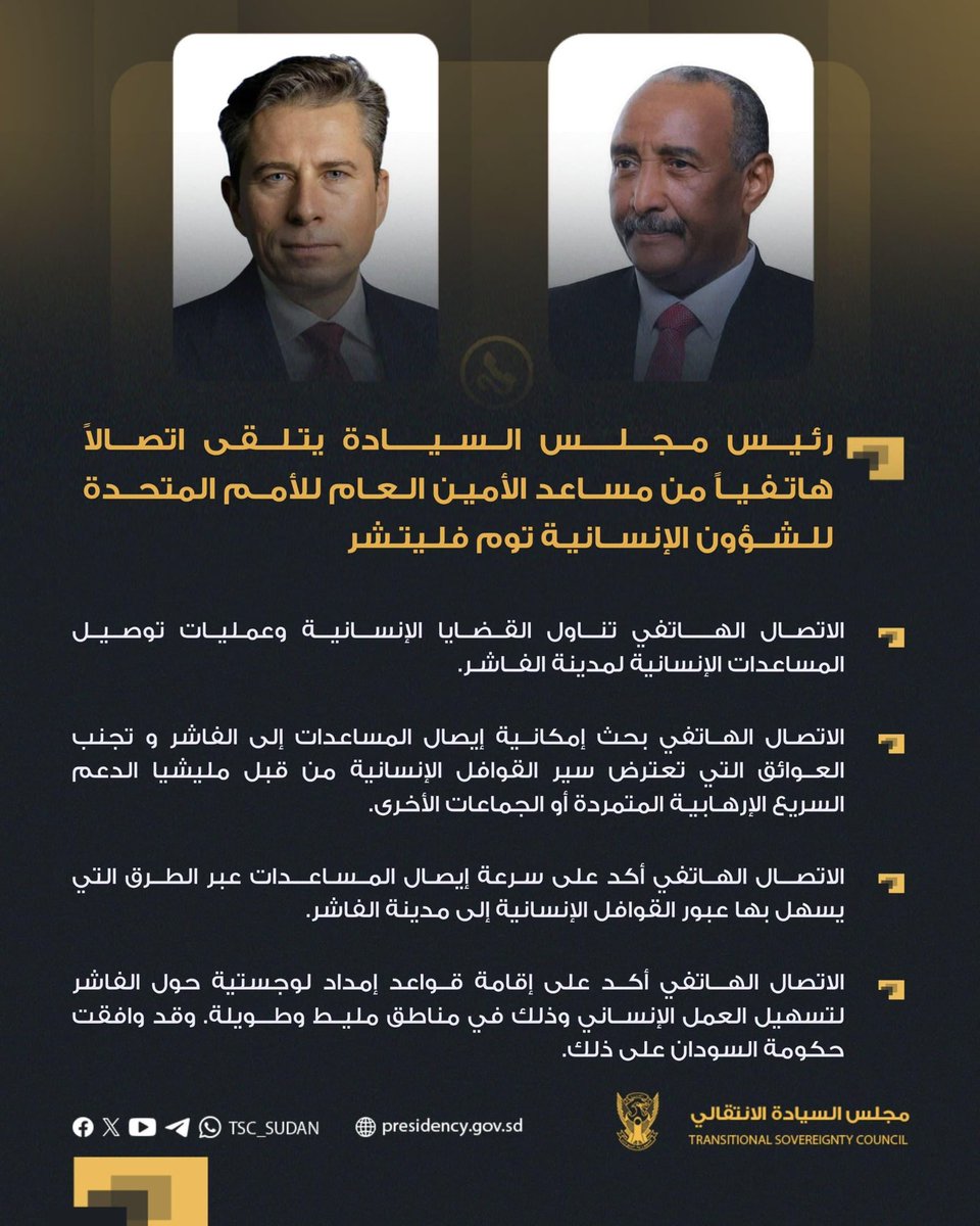 مجلس السيادة رئيس مجلس السيادة الانتقالي يتلقى اتصالاً هاتفياً من مساعد الأمين العام للأمم ا… By null Published September 6, 2025 Share SHARE Facebook Twitter Pinterest LinkedIn[ad_1] ⭕️ رئيس مجلس السيادة الانتقالي يتلقى اتصالاً هاتفياً من مساعد الأمين العام للأمم المتحدة للشؤون الإنسانية بورتسودان ٢١-٤-٢٠٢٥م [ad_2] Source by مجلس السيادة الإنتقالي – السودان Facebook Twitter Pinterest LinkedIn Share This Article Facebook Twitter Email Print Previous Article I met this morning with the delegation of the National Front of the Central Stat… Next Article أزمة القومية عند ياسر العطا قديمة .. بعد كل هذه الحروب و الدماء لا زال ياسر يكرر… Leave a Comment Leave a Reply Cancel replyYour email address will not be published. Required fields are marked *Comment * Name * Email * Website Save my name, email, and website in this browser for the next time I comment. Δ SearchSearchRecent Postsأكرمنا الله صباح اليوم الأحد بلقاء إخوةٍ كرام، على ضفة النيل الأزرق، حيث شاي الش… أعلن بنك السودان المركزي في منشور إدارة السياسات رقم (2025/15) رفع الاحتكار عن ا… ندوة بعنوان: القانون الدولي والسيادة الوطنية قراءة في موقف السودان من لجنة تقصي … والي نهر النيل تستقبل وزير الموارد البشرية والرعاية الاجتماعية الوزير يشيد بالأ… كامل ادريس: رئيس اللجنة السياسية لمؤسسات الدولة السودانية. Recent CommentsNo comments to show.