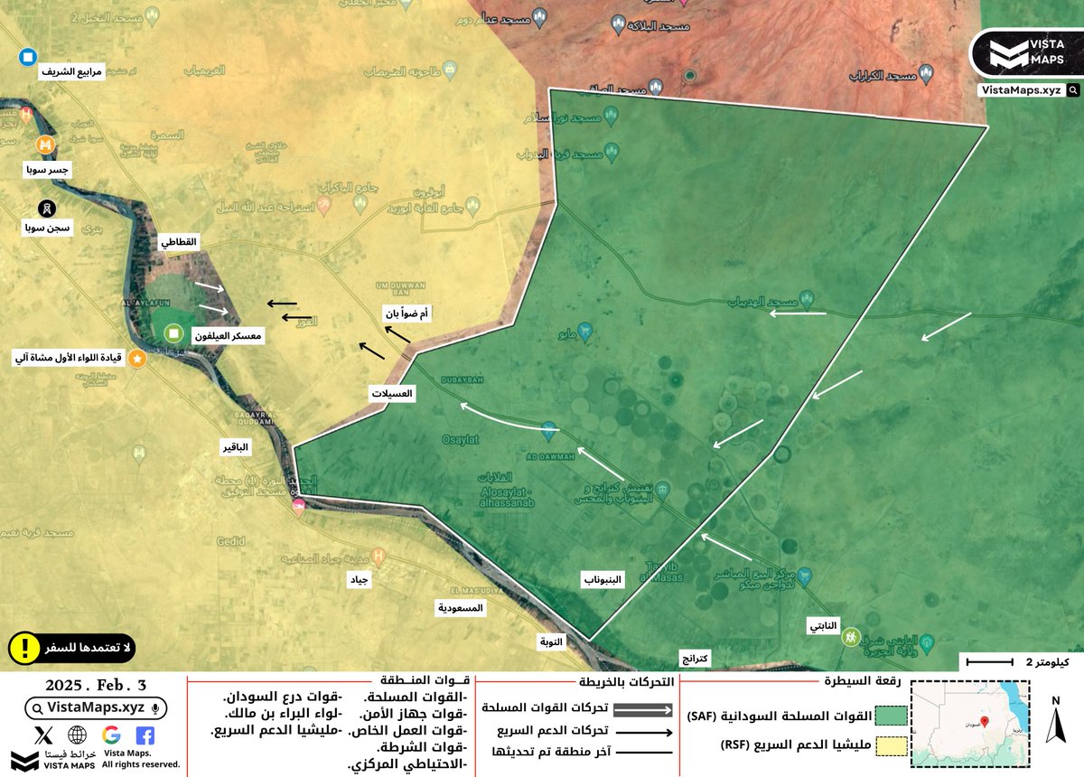 Vista #الخرطوم | شرق النيل – القوات المسلحة تفرض سيطرتها على مناطق البنبوناب والعسيلا… By null Published September 6, 2025 Share SHARE Facebook Twitter Pinterest LinkedIn[ad_1] #الخرطوم | شرق النيل – القوات المسلحة تفرض سيطرتها على مناطق البنبوناب والعسيلات، وتتقدم لفك حصار معسكرها في منطقة العيلفون. [ad_2] Source by VISTA Facebook Twitter Pinterest LinkedIn Share This Article Facebook Twitter Email Print Previous Article ما صحة الصورة المتداولة حول حشد عبدالرحيم دقلو مقاتلين من «شمال تشاد، نيجر وليبي… Next Article Sudan is facing the world’s most pressing displacement crisis, with over 13 mill… Leave a Comment Leave a Reply Cancel replyYour email address will not be published. Required fields are marked *Comment * Name * Email * Website Save my name, email, and website in this browser for the next time I comment. Δ SearchSearchRecent Postsأكرمنا الله صباح اليوم الأحد بلقاء إخوةٍ كرام، على ضفة النيل الأزرق، حيث شاي الش… أعلن بنك السودان المركزي في منشور إدارة السياسات رقم (2025/15) رفع الاحتكار عن ا… ندوة بعنوان: القانون الدولي والسيادة الوطنية قراءة في موقف السودان من لجنة تقصي … والي نهر النيل تستقبل وزير الموارد البشرية والرعاية الاجتماعية الوزير يشيد بالأ… كامل ادريس: رئيس اللجنة السياسية لمؤسسات الدولة السودانية. Recent CommentsNo comments to show.