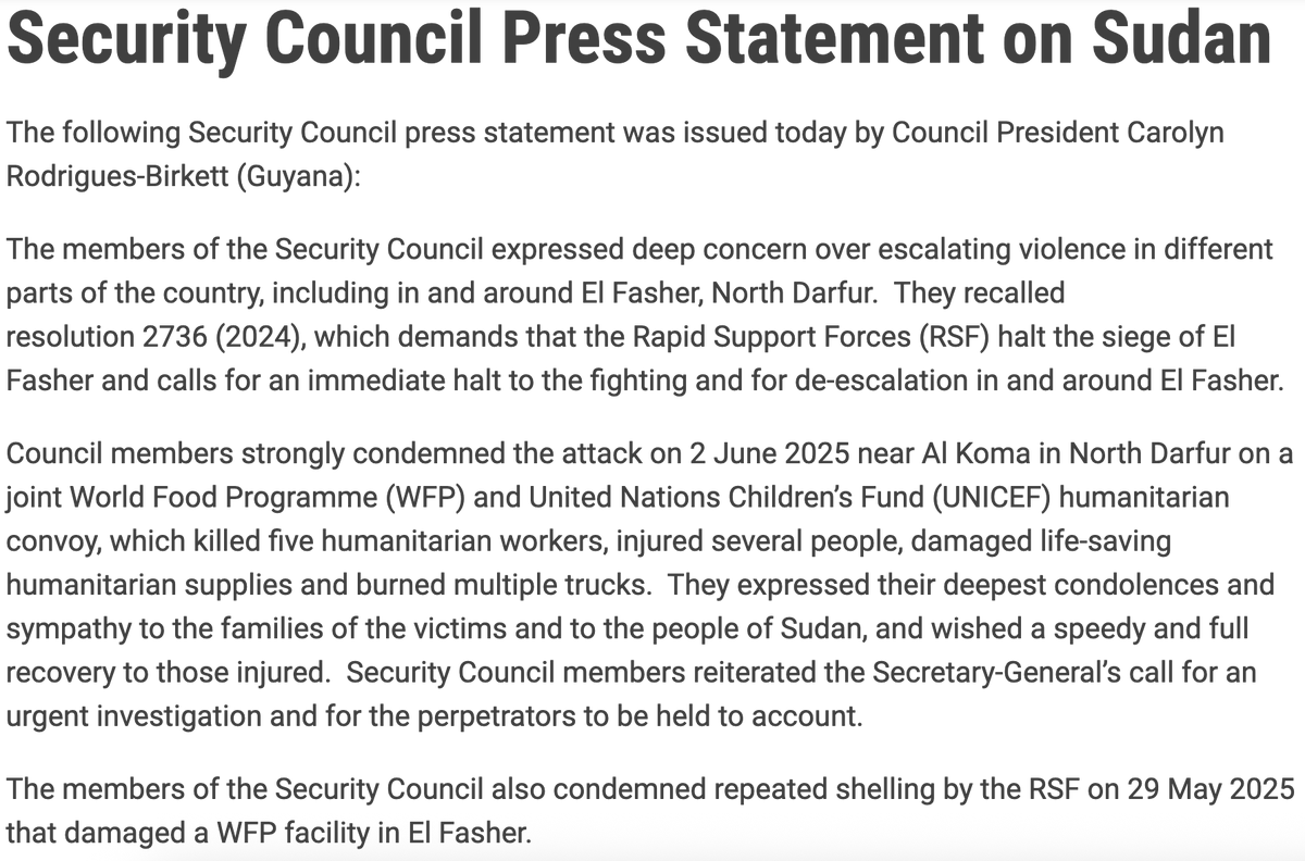 This is an incredibly weak statement from the UNSC on #Sudan yesterday given the…
