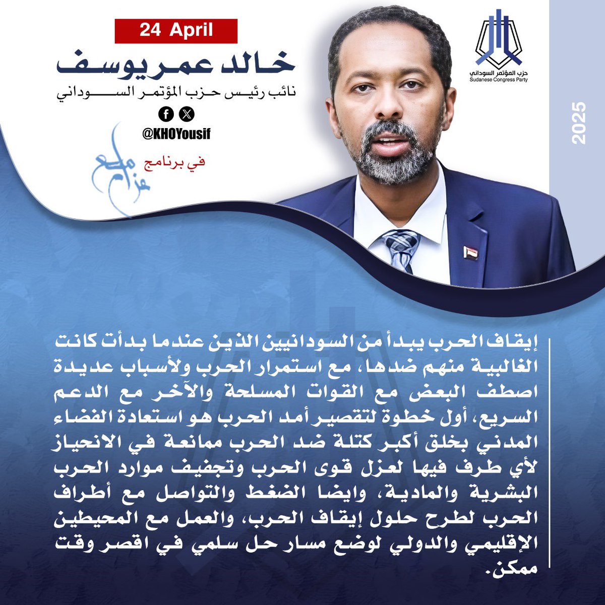 م.خالد عمر يوسف @KHOYousif نائب رئيس الحزب والقيادي في التحالف المدني الديمقراطي لقوى الثورة “صمود”