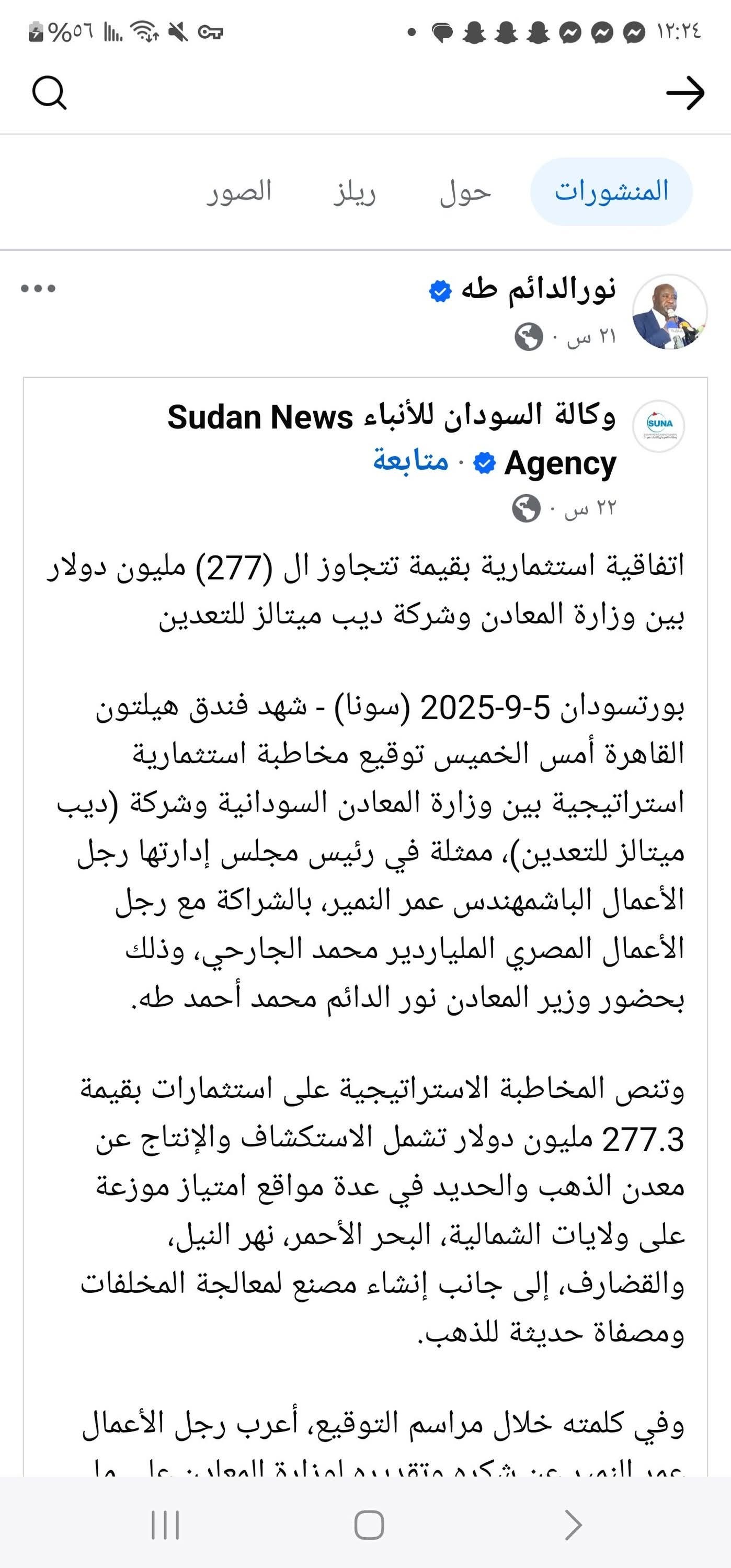 ◀وبين صور رسمية للتوقيع ونفي حكومي قاطع، يقف الرأي العام السوداني والمصري أمام لغز استثماري ساخن قد يغير ملامح قطاع الذهب في المنطقة أو يكشف عن شبكة نفوذ تتلاعب بالمليارات خلف الكواليس.