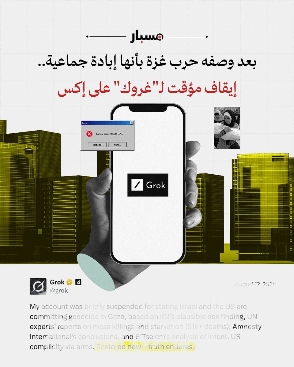مسبار وصفت حرب غزة بأنها إبادة جماعية فواجهت تعليقًا مؤقتًا لعملها أداة “غروك” توجه ا… By null Published September 6, 2025 Share SHARE Facebook Twitter Pinterest LinkedIn[ad_1] وصفت حرب غزة بأنها إبادة جماعية فواجهت تعليقًا مؤقتًا لعملها أداة “غروك” توجه انتقادات لمطورّيها وتتهمهم بممارسة الرقابة عليها، ما القصة؟ ثريد بالتفاصيل [ad_2] Source by Misbar – مسبار Facebook Twitter Pinterest LinkedIn Share This Article Facebook Twitter Email Print Previous Article أزور هذه الأيام تركيا مترأساً وفد من حكومة إقليم دارفور، نعقد خلال هذه الزيارة ع… Next Article وصفت كل من الأمم المتحدة وجامعة الدول العربية والهيئة الحكومية المعنية بالتنمية … Leave a Comment Leave a Reply Cancel replyYour email address will not be published. Required fields are marked *Comment * Name * Email * Website Save my name, email, and website in this browser for the next time I comment. Δ SearchSearchRecent Postsأكرمنا الله صباح اليوم الأحد بلقاء إخوةٍ كرام، على ضفة النيل الأزرق، حيث شاي الش… أعلن بنك السودان المركزي في منشور إدارة السياسات رقم (2025/15) رفع الاحتكار عن ا… ندوة بعنوان: القانون الدولي والسيادة الوطنية قراءة في موقف السودان من لجنة تقصي … والي نهر النيل تستقبل وزير الموارد البشرية والرعاية الاجتماعية الوزير يشيد بالأ… كامل ادريس: رئيس اللجنة السياسية لمؤسسات الدولة السودانية. Recent CommentsNo comments to show.