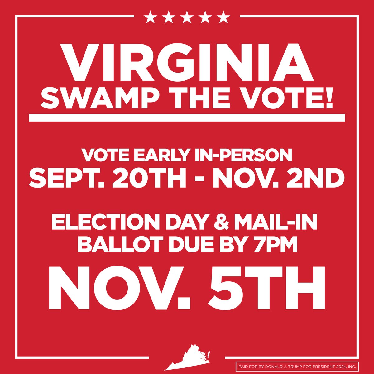 VIRGINIA! In-person early voting ends tomorrow! Together, we can make this elect…