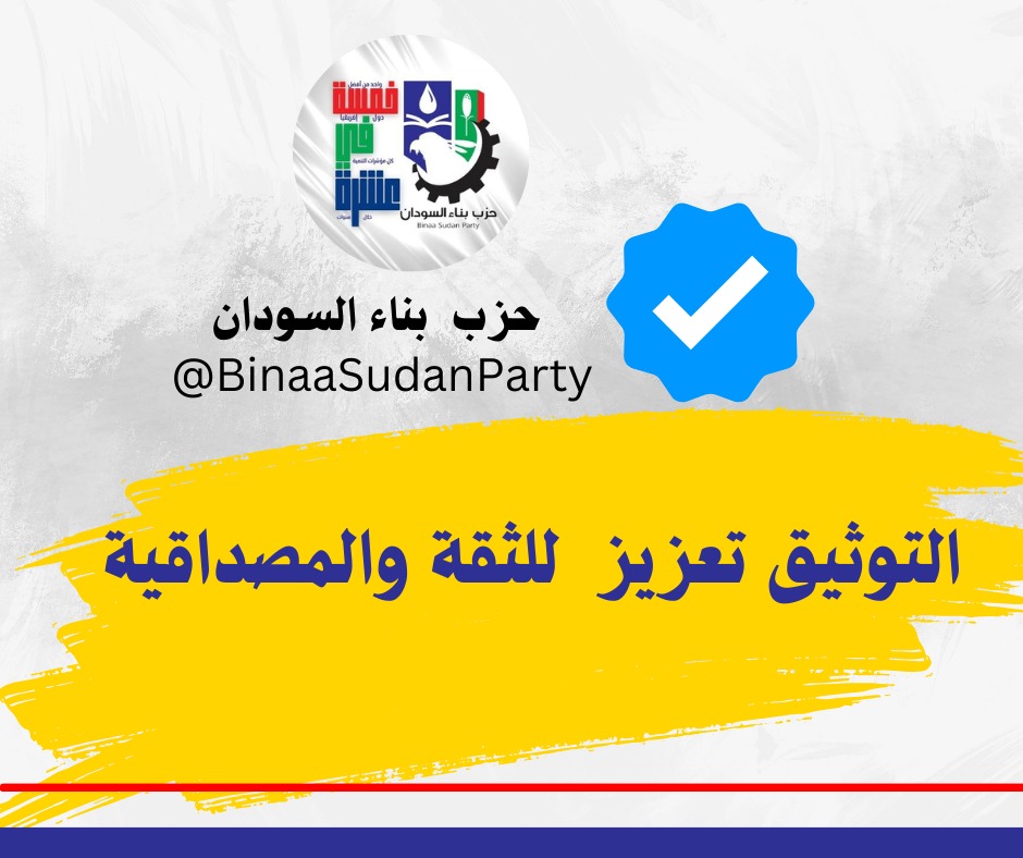 إيماناً من حزب بناء السودان بأهمية توثيق الحسابات على مواقع التواصل الاجتماعي و دوره الفاعل في مكافحة الاحتيال و انتحال الهوية، بناء الثقة و المصداقية، ميزات الأمان الإضافية التي توفرها مواقع التواصل الاجتماعي للحسابات الموثقة و مكافحة المعلومات المضللة و الشائعات، قام حزب بناء السودان مؤخراً بتوثيق صفحته على منصة X (تويتر سابقاً) بعد أن كان فيما سبق قد وثق صفحته على الفيس بوك.