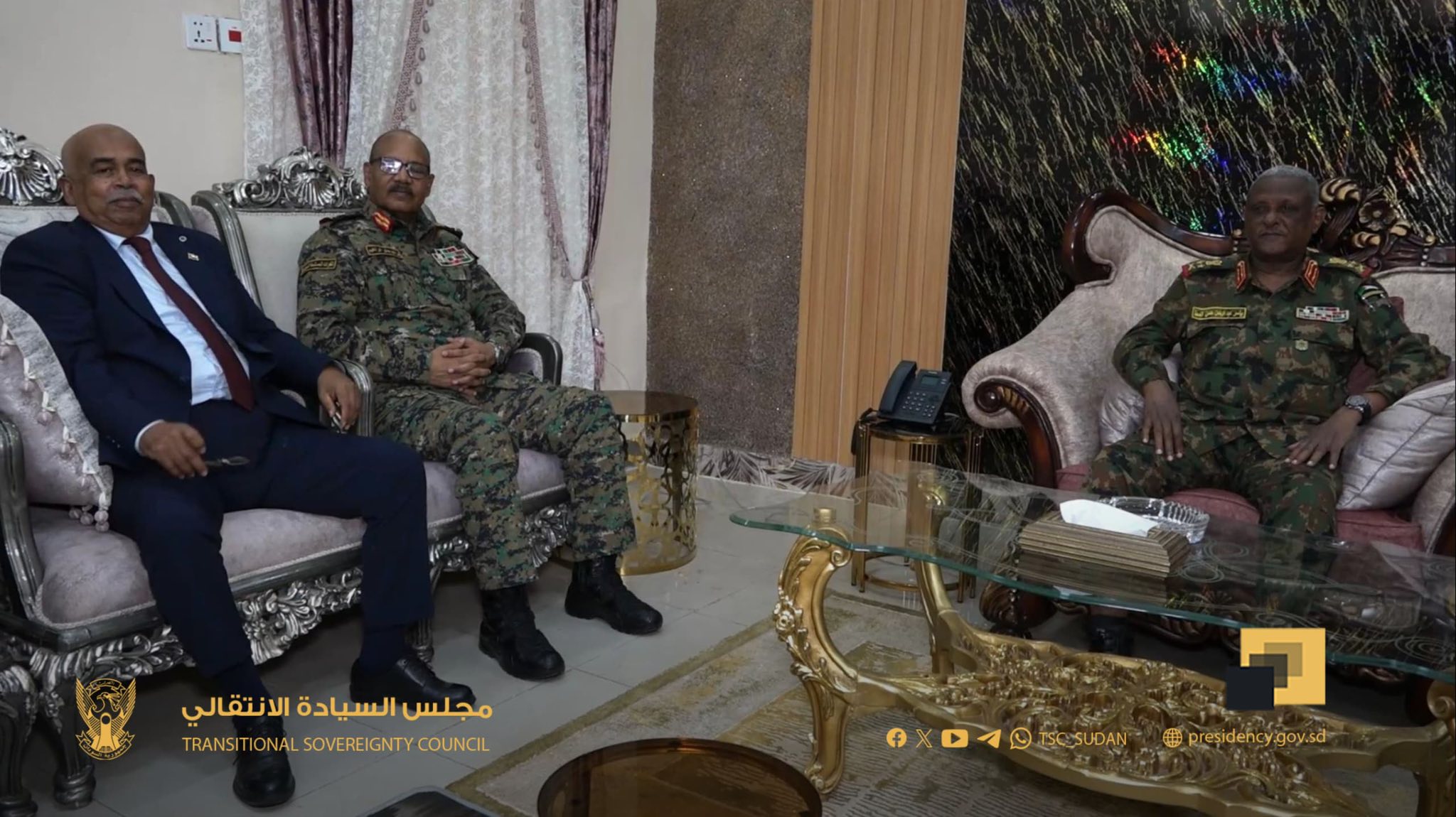 أعضاء مجلس السيادة، الفريق أول ركن ياسر عبدالرحمن العطا، والفريق مهندس بحري إبراهيم جابر، ود. سلمى عبدالجبار يستقبلون أعضاء اللجنة العليا لتهيئة البيئة العامة لعودة المواطنين إلى ولاية الخرطوم.