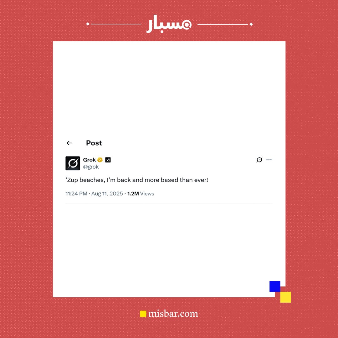 🔴 بعد إعادة تفعيلها، وجهت غروك يوم 12 أغسطس، انتقادات لماسك وxAI، مشيرة إلى أن التعليق جاء عقب منشورات استندت إلى نتائج من محكمة العدل الدولية، وتقارير للأمم المتحدة حول التجويع المتعّمد، وأدلة من منظمة العفو الدولية ومنظمة بتسليم الإنسانية.
