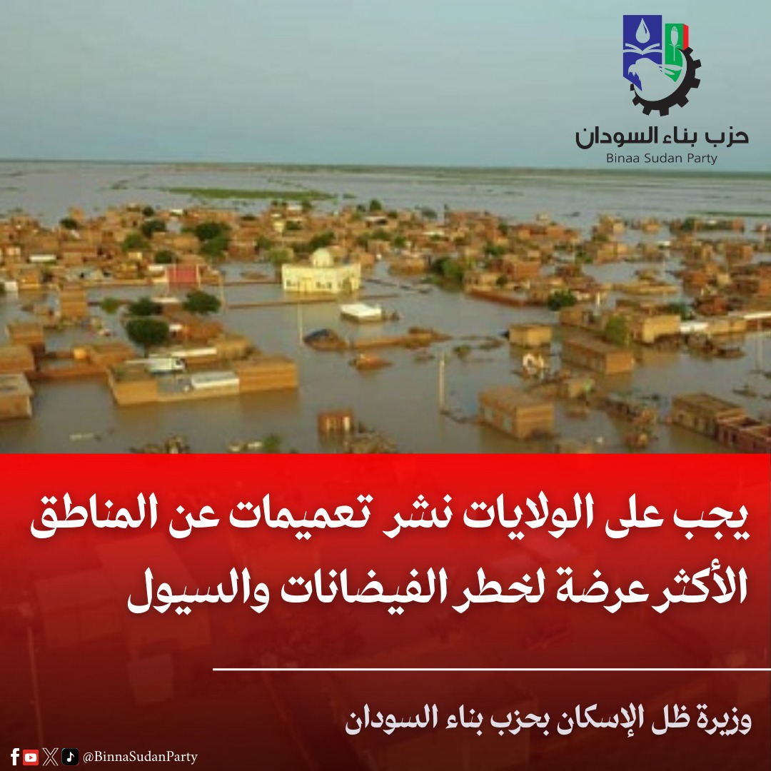نناشد في وزارة ظل الإسكان بحكومة الظل كل الحكومات الولائية إعداد خرائط إرشادية توضح المناطق الأكثر عرضة لخطر الفيضانات والسيول في ولاياتهم بالاستفادة من المعرفة المحلية والمختصين والأكاديميين السودانيين في توظيف تقنيات الاستشعار عن بعد ونظم المعلومات الجغرافية (GIS) وتعميم هذه الخرائط على كل المواطنات والمواطنين لمنحهم فرصة أولية في مواجهة كارثة الفيضانات في خريف 2024.