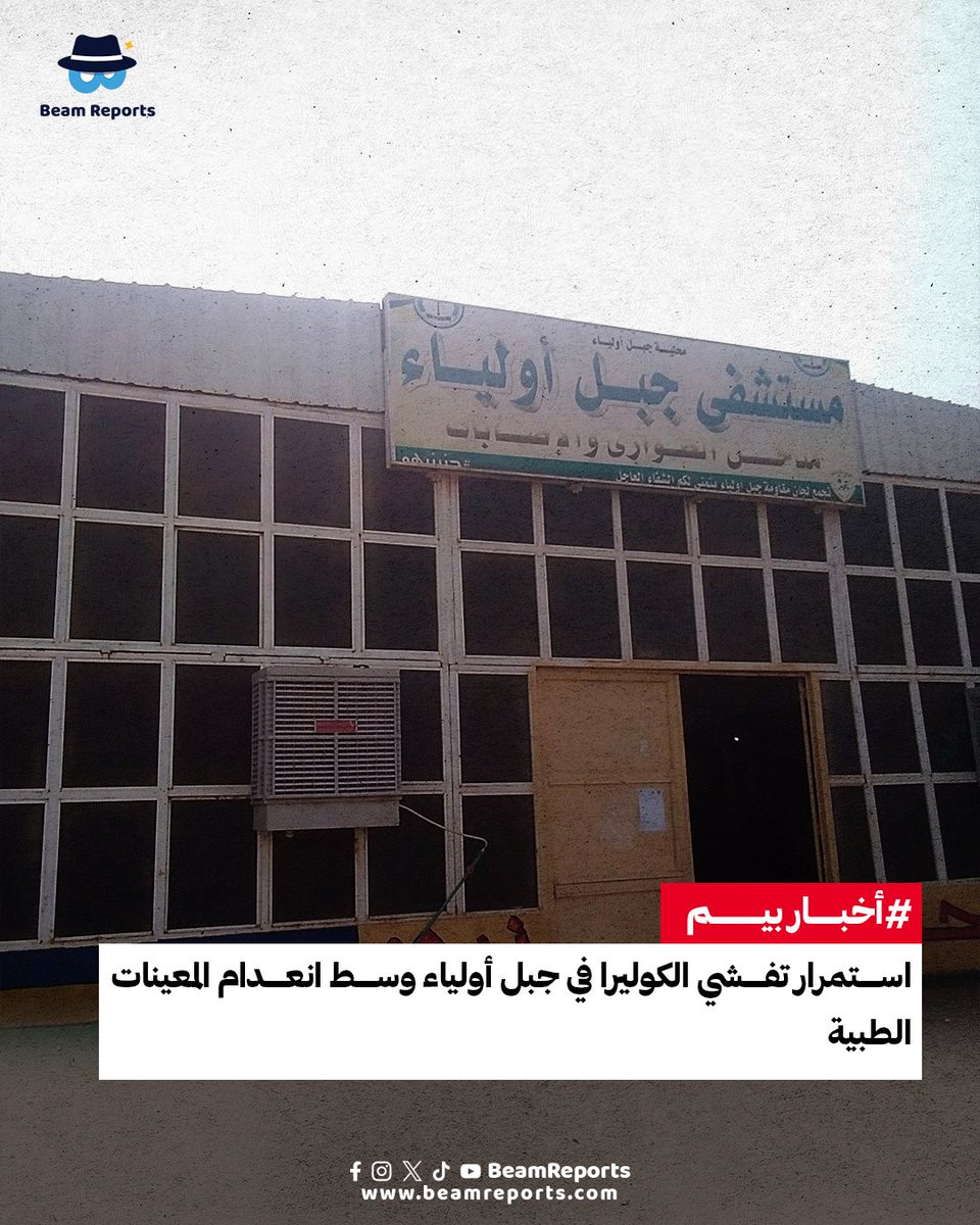 يستمر تفشي مرض الكوليرا في محلية جبل أولياء جنوبي العاصمة السودانية للأسبوع الثاني على التوالي وسط انعدام المعينات الطبية في المنطقة. وقالت غرفة طوارئ جبل أولياء إن نسبة الوفيات المسجلة من حالات الإسهالات المائية والكوليرا تجاوزت 30%.
