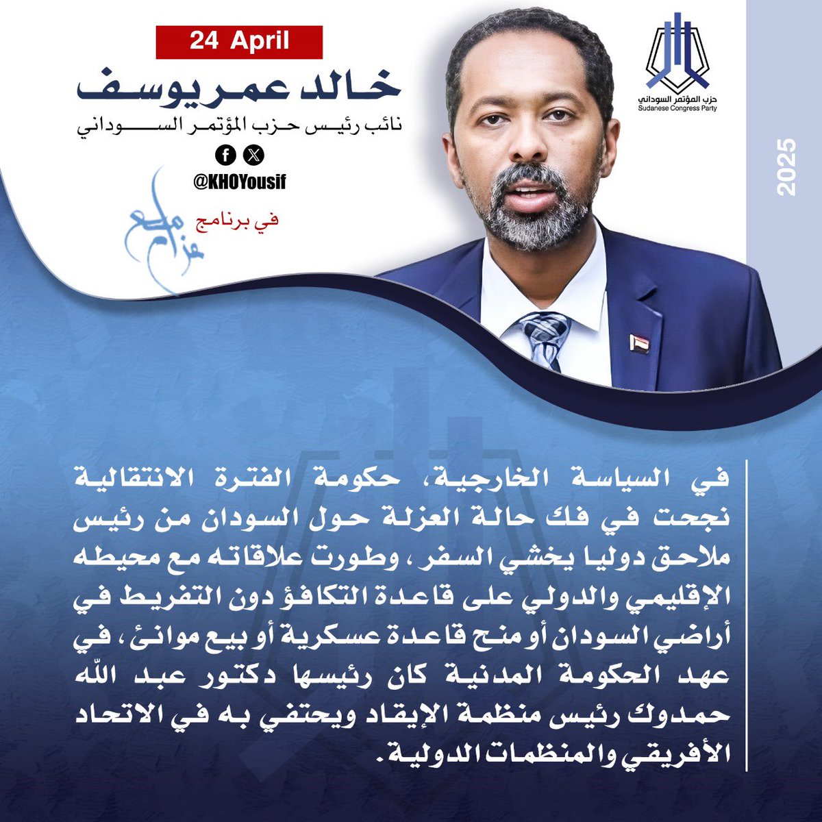 م.خالد عمر يوسف @KHOYousif نائب رئيس الحزب والقيادي في التحالف المدني الديمقراطي لقوى الثورة “صمود”