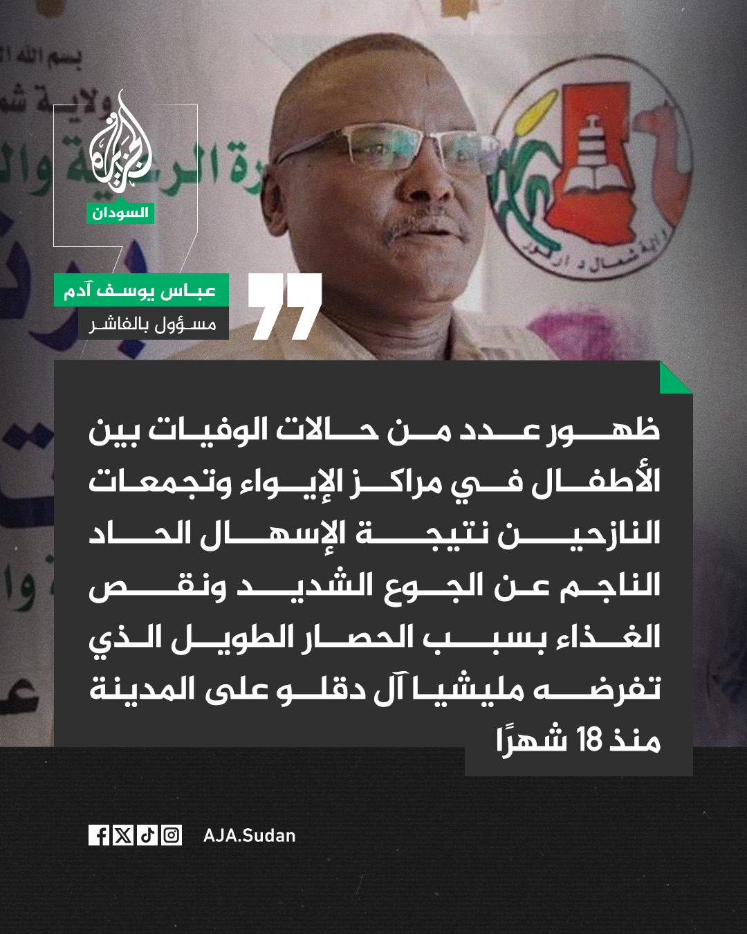 مفوض العون الإنساني بشمال دارفور: الفاشر تضم حاليًّا 198 ألف أسرة، تشمل 945 ألف …