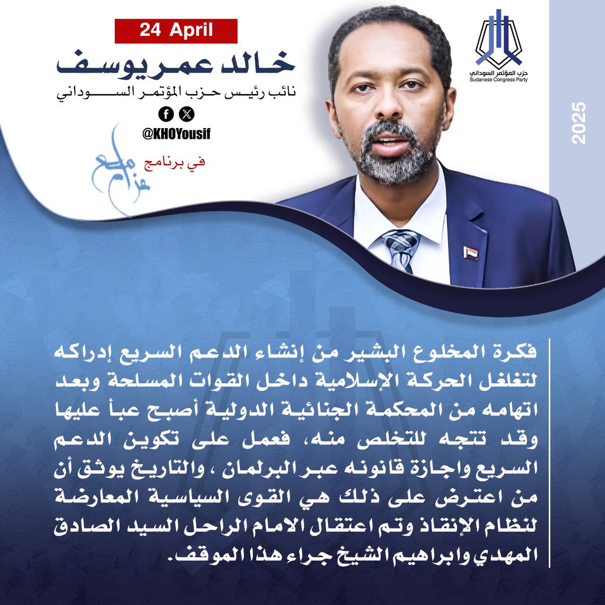 م.خالد عمر يوسف @KHOYousif نائب رئيس الحزب والقيادي في التحالف المدني الديمقراطي لقوى الثورة “صمود”