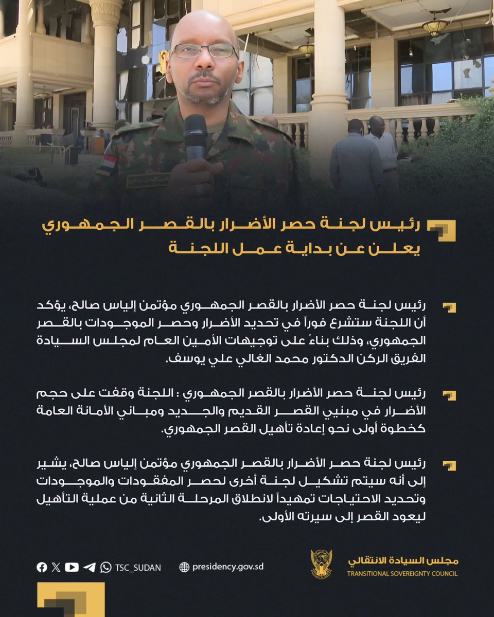 مجلس السيادة رئيس لجنة حصر الأضرار بالقصر الجمهوري يعلن عن بداية عمل اللجنة الخرطوم ١٣-٤-٢٠… By null Published September 8, 2025 Share SHARE Facebook Twitter Pinterest LinkedIn[ad_1] ⭕️ رئيس لجنة حصر الأضرار بالقصر الجمهوري يعلن عن بداية عمل اللجنة الخرطوم ١٣-٤-٢٠٢٥م [ad_2] Source by مجلس السيادة الإنتقالي – السودان Facebook Twitter Pinterest LinkedIn Share This Article Facebook Twitter Email Print Previous Article شكرت الوفد على التنوير الضافي و تضامنهم مع أجهزة الدولة برغم مآخذي على أداء الاد… Next Article سألنا CHATGPT 4O فاجاب بما يلي : السلالة الجينية للنبي إبراهيم عليه السلام ليست… Leave a Comment Leave a Reply Cancel replyYour email address will not be published. Required fields are marked *Comment * Name * Email * Website Save my name, email, and website in this browser for the next time I comment. Δ SearchSearchRecent Postsأكرمنا الله صباح اليوم الأحد بلقاء إخوةٍ كرام، على ضفة النيل الأزرق، حيث شاي الش… أعلن بنك السودان المركزي في منشور إدارة السياسات رقم (2025/15) رفع الاحتكار عن ا… ندوة بعنوان: القانون الدولي والسيادة الوطنية قراءة في موقف السودان من لجنة تقصي … والي نهر النيل تستقبل وزير الموارد البشرية والرعاية الاجتماعية الوزير يشيد بالأ… كامل ادريس: رئيس اللجنة السياسية لمؤسسات الدولة السودانية. Recent CommentsNo comments to show.