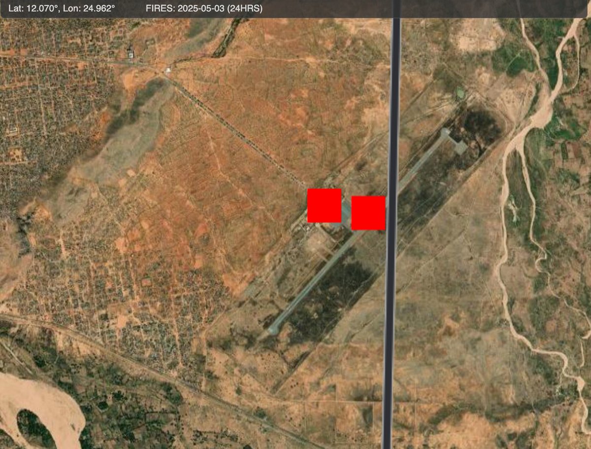 🟩🛰️ بحسب مصادر مطلعة، تم استهداف مخازن أسلحة وذخائر داخل مطار نيالا في وقتٍ متأخر من ليلة أمس، ما أدى إلى اندلاع حرائق واسعة، وهو ما أكدته بيانات مرصد الحرائق التابع لوكالة «ناسا».