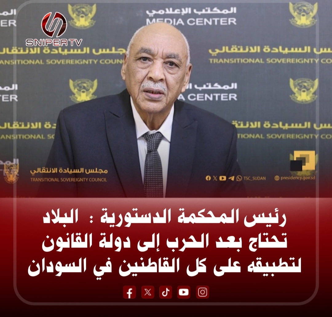 نادر البدوي رئيس المحكمة الدستورية : البلاد تحتاج بعد الحرب إلى دولة القانون لتطبيقه على كل… By null Published September 9, 2025 Share SHARE Facebook Twitter Pinterest LinkedIn[ad_1] رئيس المحكمة الدستورية : البلاد تحتاج بعد الحرب إلى دولة القانون لتطبيقه على كل القاطنين في السودان [ad_2] Source Facebook Twitter Pinterest LinkedIn Share This Article Facebook Twitter Email Print Previous Article استهداف الاعيان المدنية والخدمية جريمة انسانية واخلاقية تضاعف معاناة البسطاء وا… Next Article فيديو آخر يوثّق لحظة خروج عشرات السجناء بعد أن أطلقت مليشيا الدعم السريع سراحهم… Leave a Comment Leave a Reply Cancel replyYour email address will not be published. Required fields are marked *Comment * Name * Email * Website Save my name, email, and website in this browser for the next time I comment. Δ SearchSearchRecent Postsأكرمنا الله صباح اليوم الأحد بلقاء إخوةٍ كرام، على ضفة النيل الأزرق، حيث شاي الش… أعلن بنك السودان المركزي في منشور إدارة السياسات رقم (2025/15) رفع الاحتكار عن ا… ندوة بعنوان: القانون الدولي والسيادة الوطنية قراءة في موقف السودان من لجنة تقصي … والي نهر النيل تستقبل وزير الموارد البشرية والرعاية الاجتماعية الوزير يشيد بالأ… كامل ادريس: رئيس اللجنة السياسية لمؤسسات الدولة السودانية. Recent CommentsNo comments to show.
