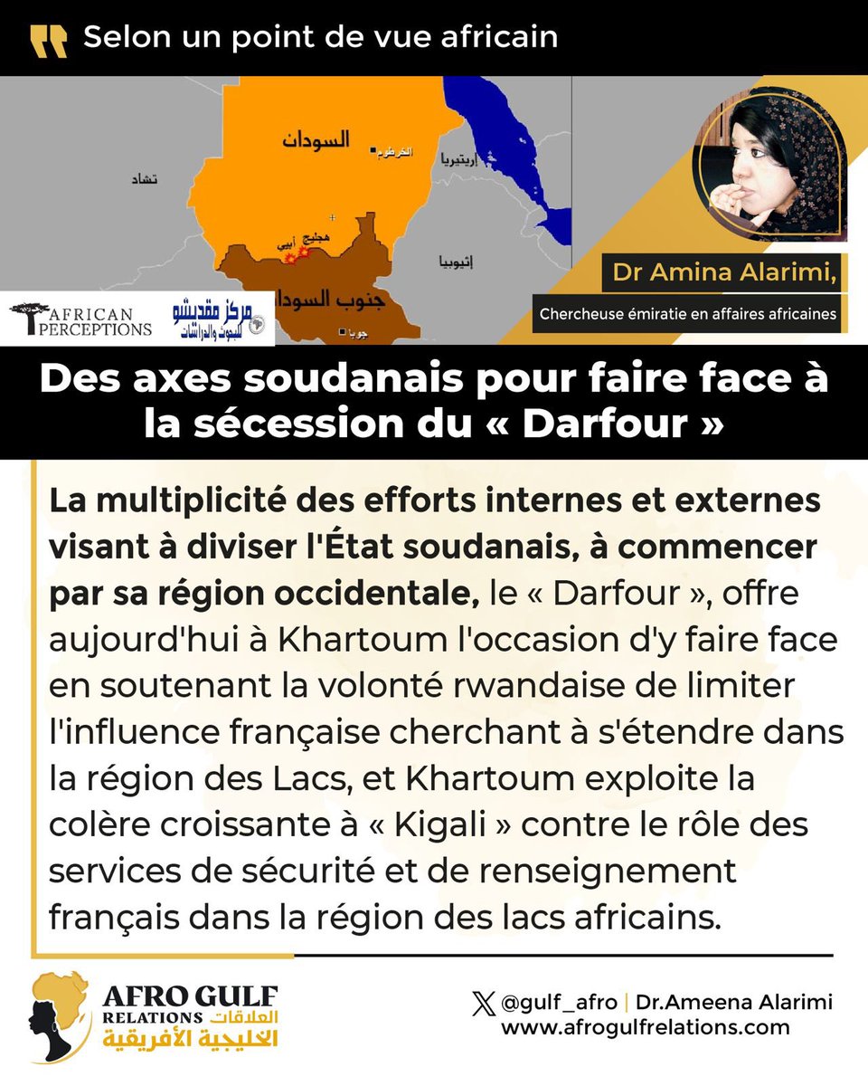 La multiplicité des efforts internes et externes visant à diviser l’État soudanais, à commencer par sa région occidentale, le « Darfour », offre aujourd’hui à Khartoum l’occasion d’y faire face en soutenant la volonté rwandaise de limiter l’influence française cherchant à s’étendre dans la région des Lacs, et Khartoum exploite la colère croissante à « Kigali » contre le rôle des services de sécurité et de renseignement français dans la région des lacs africains.