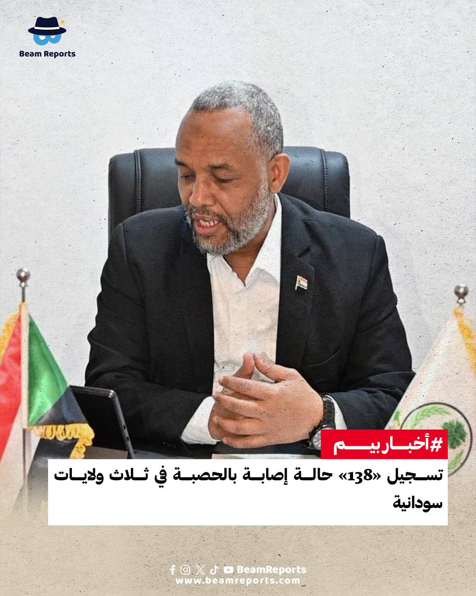 أعلن مركز عمليات الطوارئ الاتحادي التابع لوزارة الصحة، الثلاثاء عن تسجيل 138 حالة إصابة بالحصبة في ثلاث ولايات سودانية، قبل أن يكشف عن انخفاض معدل الإصابة بمرضي الكوليرا وحمى الضنك.