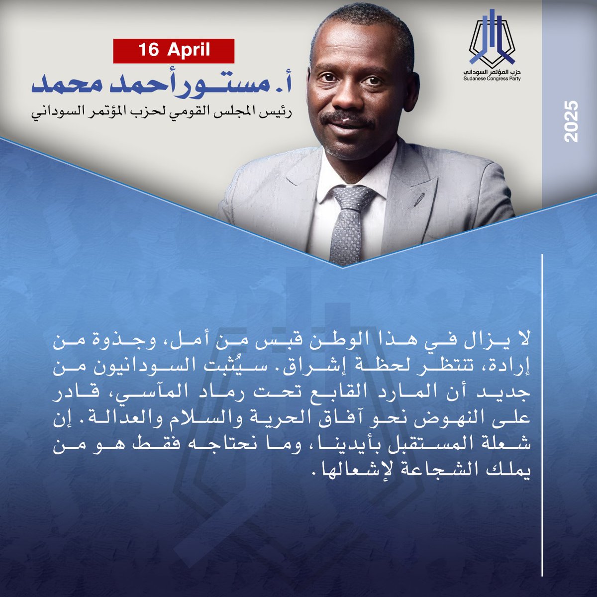 أ.مستور أحمد محمد @MastorAhmed رئيس المجلس القومي لحزب المؤتمر السوداني