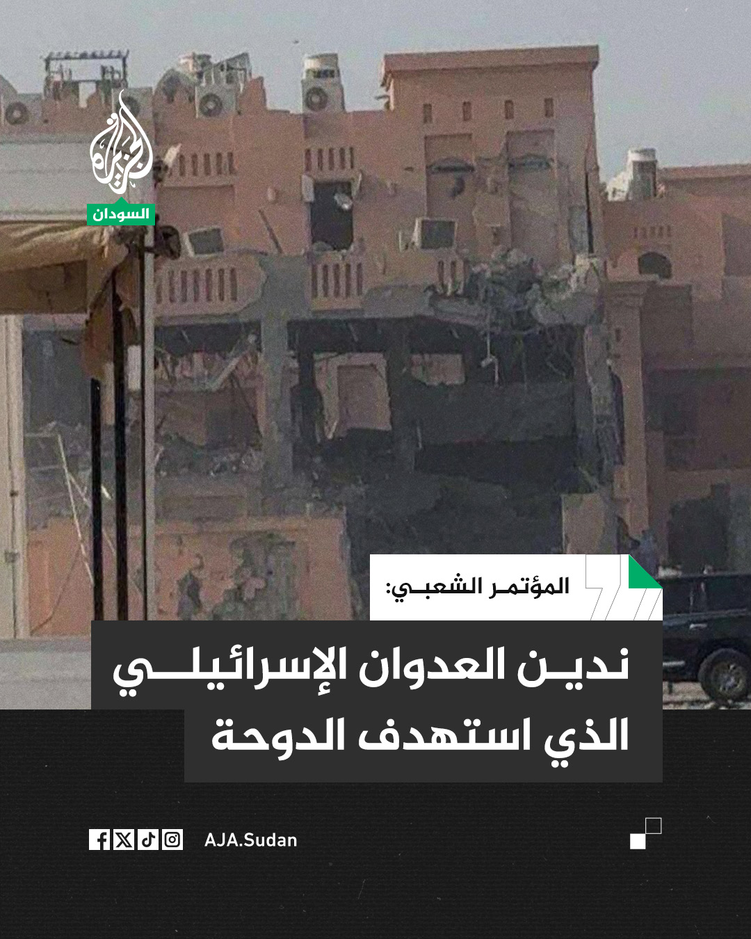 الأمانة العامة لحزب المؤتمر الشعبي السوداني: ندين بأشد العبارات العدوان الإسرائيلي الغاشم الذي استهدف اليوم مدينة الدوحة عاصمة دولة قطر ونعتبره انتهاكًا صارخًا للقوانين الدولية والأعراف الدبلوماسية