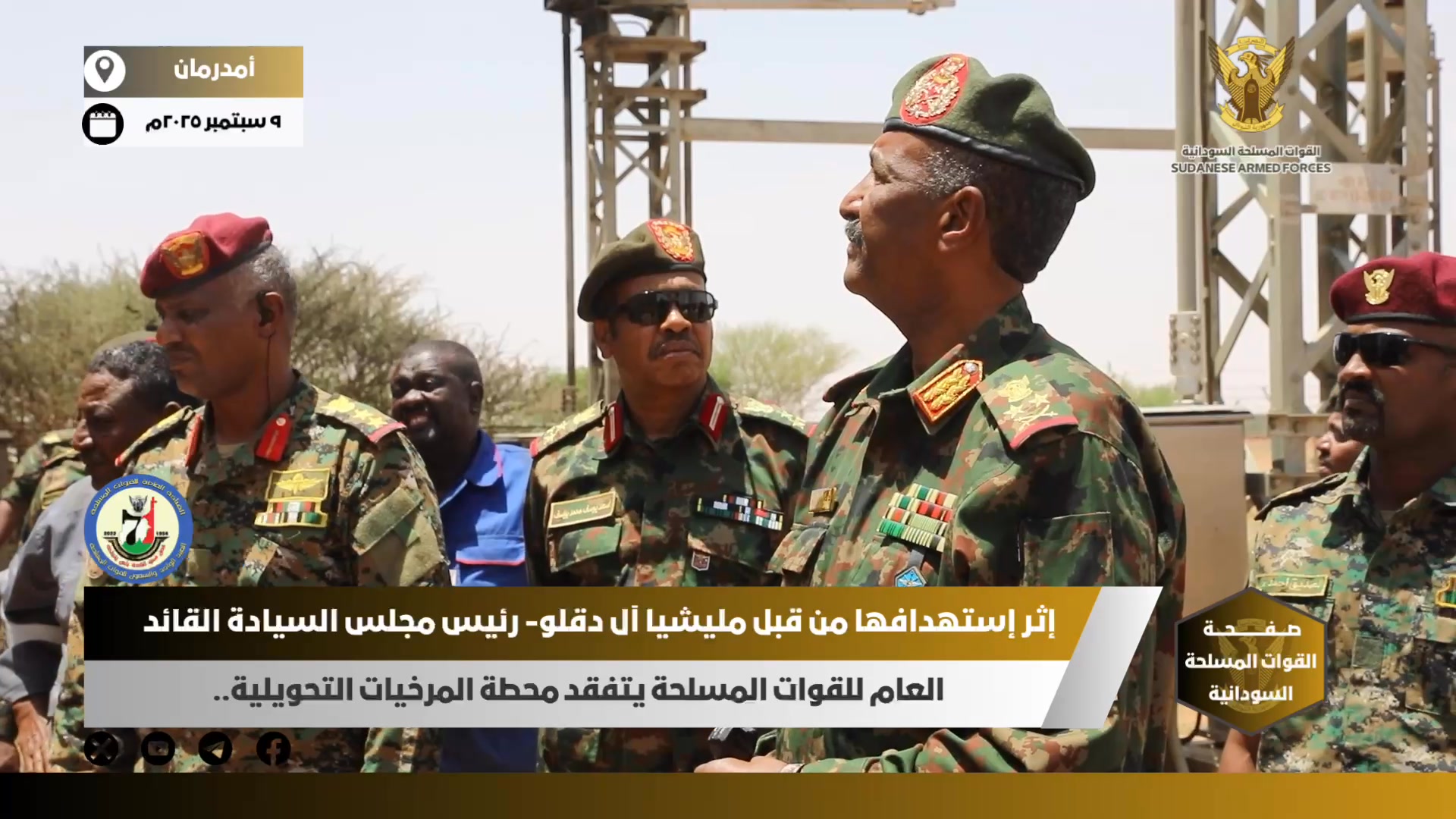 إثر استهدافها من قبل مليشيا آل دقلو – رئيس مجلس السيادة القائد العام للقوات المسلحة الفريق أول ركن عبدالفتاح البرهان يتفقد محطة المرخيات التحويلية – أمدرمان – ٠٩ سبتمبر ٢٠٢٥م.