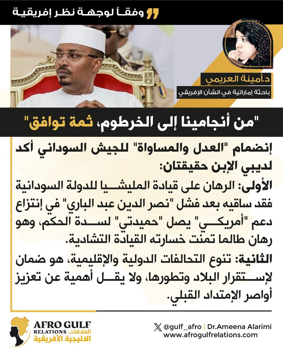 ⚡️الأولى: الرهان على قيادة المليشيا للدولة السودانية فقد ساقيه ولم يعد محل نقاش بعد فشل مساعي “نصر الدين عبد الباري” ومن خلفه في إنتزاع دعم “أمريكي” يصل لقائد المليشيا “حميدتي” لسدة الحكم في #السودان ، وهو رهان طالما تمنت خسارته القيادة التشادية، فإذا كان هناك توافق مشترك بين الرئيس “محمد ديبي” والشعب التشادي فهو توافقهم الكامل على خطورة مليشيا الدعم السريع على مستقبل الدولة التشادية والجوار الإقليمي لها، ولكنها التقاطعات التي فرضت واقعاً مختلفاً لا تريده تشاد ولا يريده رئيسها ولا يريده شعبها.