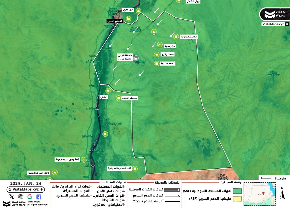 – إعلان سيطرة القوات المسلحة على مصفاة الجيلي للبترول، والسيطرة على معسكر قُري ومعسكر شاكوت شمال العاصمة.
