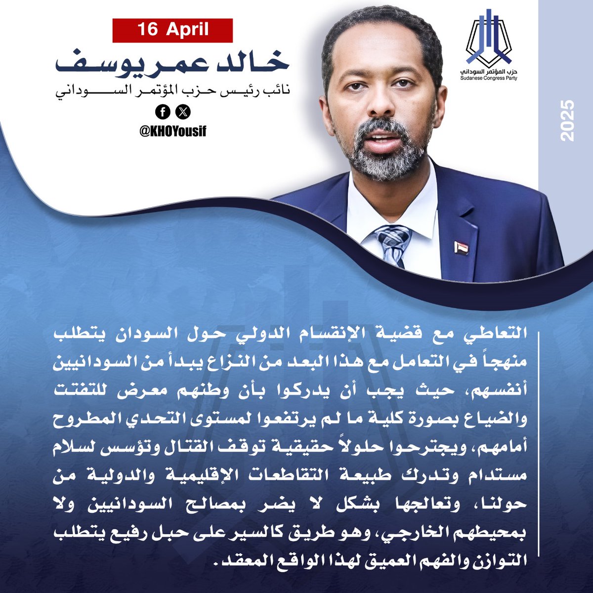 م.خالد عمر يوسف @KHOYousif نائب رئيس الحزب والقيادي في التحالف المدني الديمقراطي لقوى الثورة (صمود)