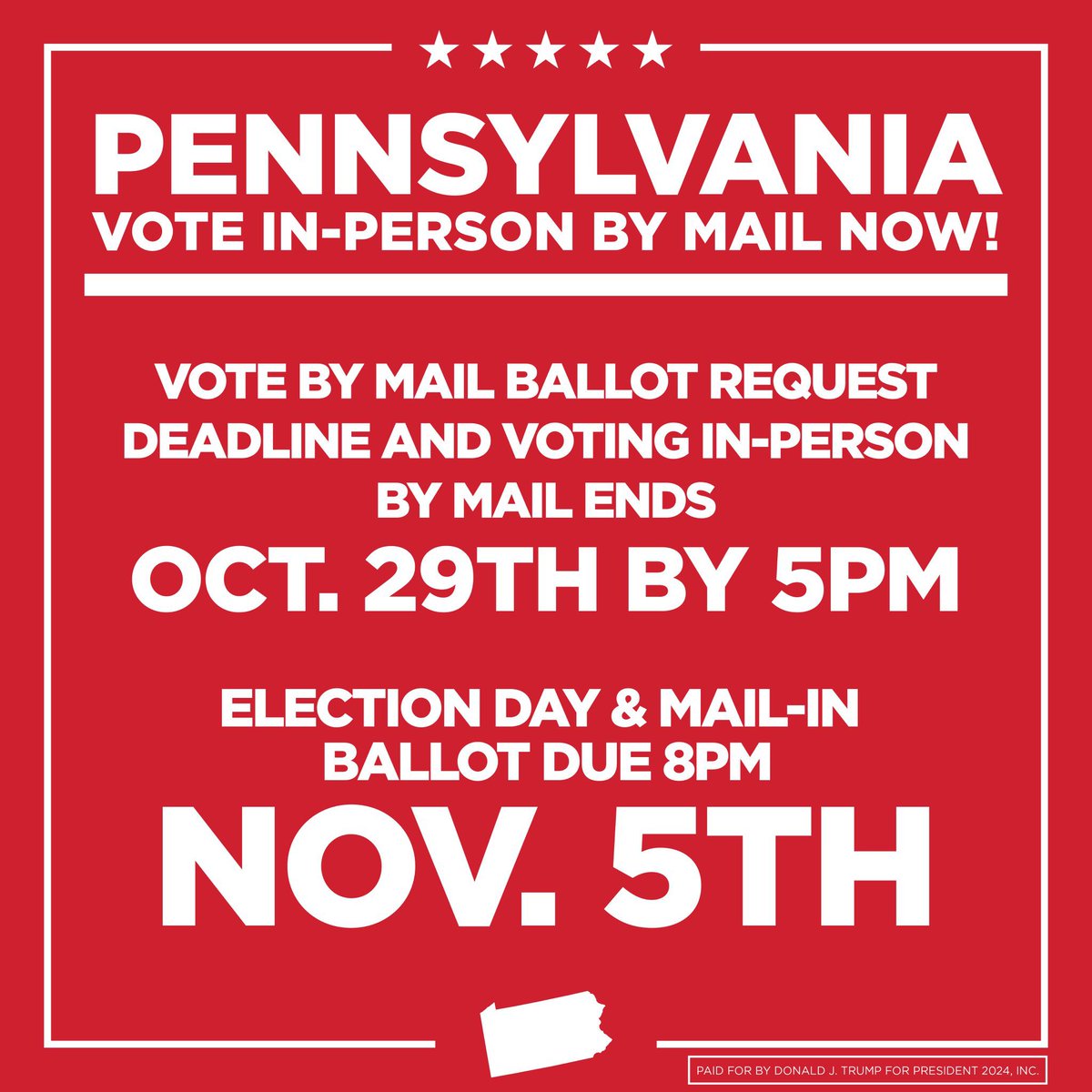 Pennsylvania, today, October 29th, is the last day to vote in-person by mail! I need you to VOTE, VOTE, VOTE! Don’t let anyone stop you from voting.