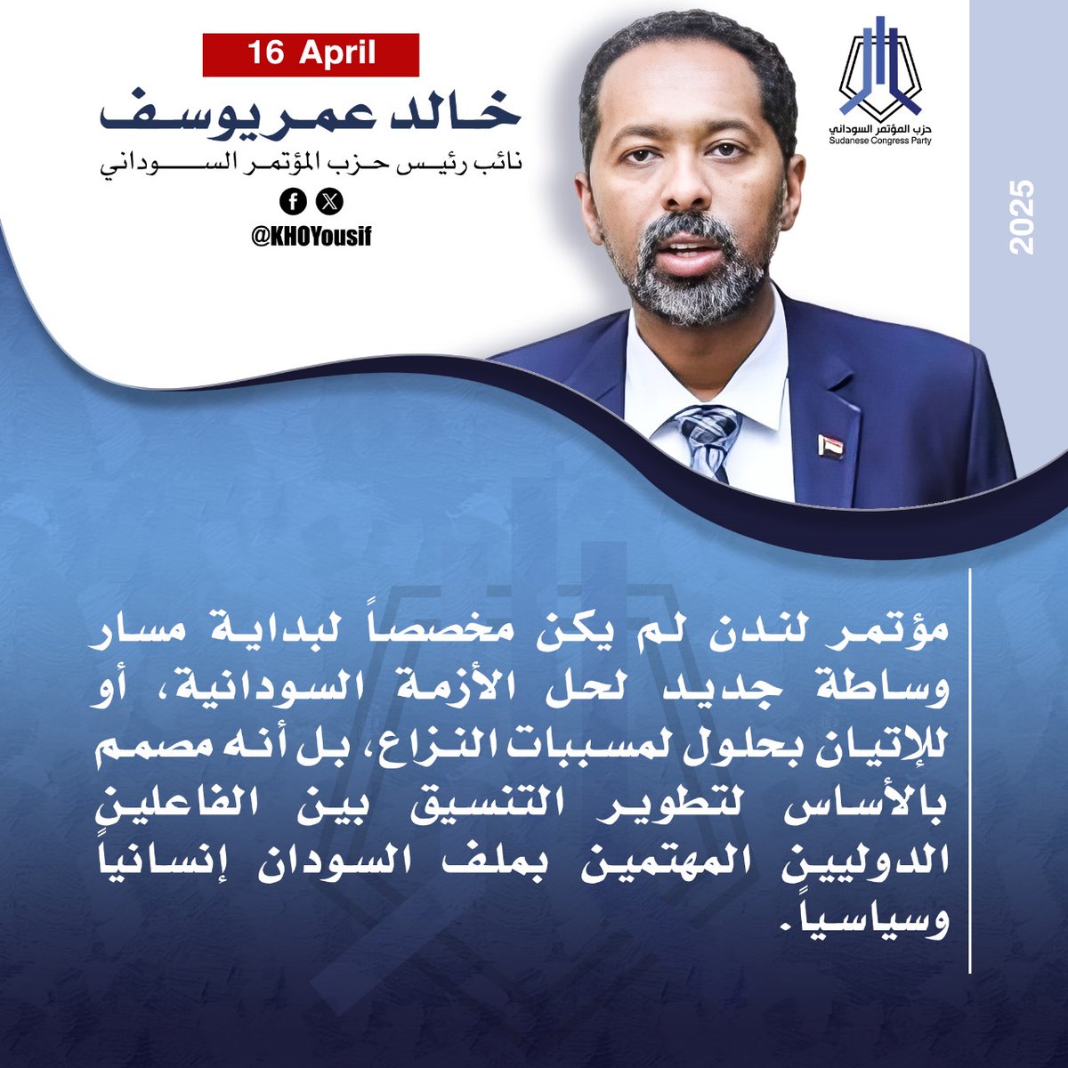مؤتمر لندن لم يكن مخصصاً لبداية مسار وساطة جديد لحل الأزمة السودانية، أو للإتيان بحلول لمسببات النزاع، بل أنه مصمم بالأساس لتطوير التنسيق بين الفاعلين الدوليين المهتمين بملف السودان إنسانياً وسياسياً.