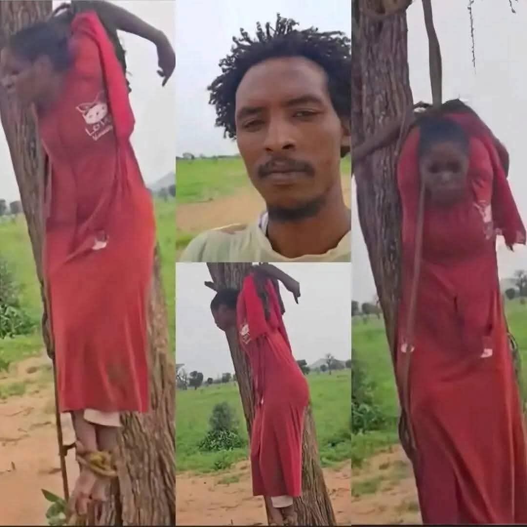 🔘 بعد إنتشار مقطع فيديو تظهر فيه فتاة معلقة بشجرة، ويظهر فيه أحد عناصر الجنجويد وهو يقوم بتصويرها.
