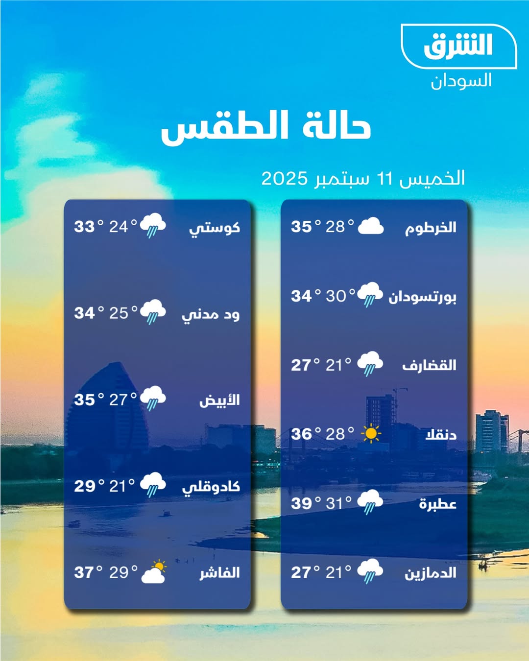 قناة الشرق حالة #الطقس في #السودان غداً #الشرق_السودان By null Published September 10, 2025 Share SHARE Facebook Twitter Pinterest LinkedIn[ad_1] حالة #الطقس في #السودان غداً #الشرق_السودان [ad_2] Source Facebook Twitter Pinterest LinkedIn Share This Article Facebook Twitter Email Print Previous Article مليشيا الدعم السريع تقتحم مدينة النهود بولاية غرب كردفان وتشرع في أعمال نهب وسل… Next Article بدء عمليات صيانة وتأهيل خطوط الكهرباء بشارع المطار بالعاصمة #الخرطوم #فيديو #الج… Leave a Comment Leave a Reply Cancel replyYour email address will not be published. Required fields are marked *Comment * Name * Email * Website Save my name, email, and website in this browser for the next time I comment. Δ SearchSearchRecent Postsأكرمنا الله صباح اليوم الأحد بلقاء إخوةٍ كرام، على ضفة النيل الأزرق، حيث شاي الش… أعلن بنك السودان المركزي في منشور إدارة السياسات رقم (2025/15) رفع الاحتكار عن ا… ندوة بعنوان: القانون الدولي والسيادة الوطنية قراءة في موقف السودان من لجنة تقصي … والي نهر النيل تستقبل وزير الموارد البشرية والرعاية الاجتماعية الوزير يشيد بالأ… كامل ادريس: رئيس اللجنة السياسية لمؤسسات الدولة السودانية. Recent CommentsNo comments to show.