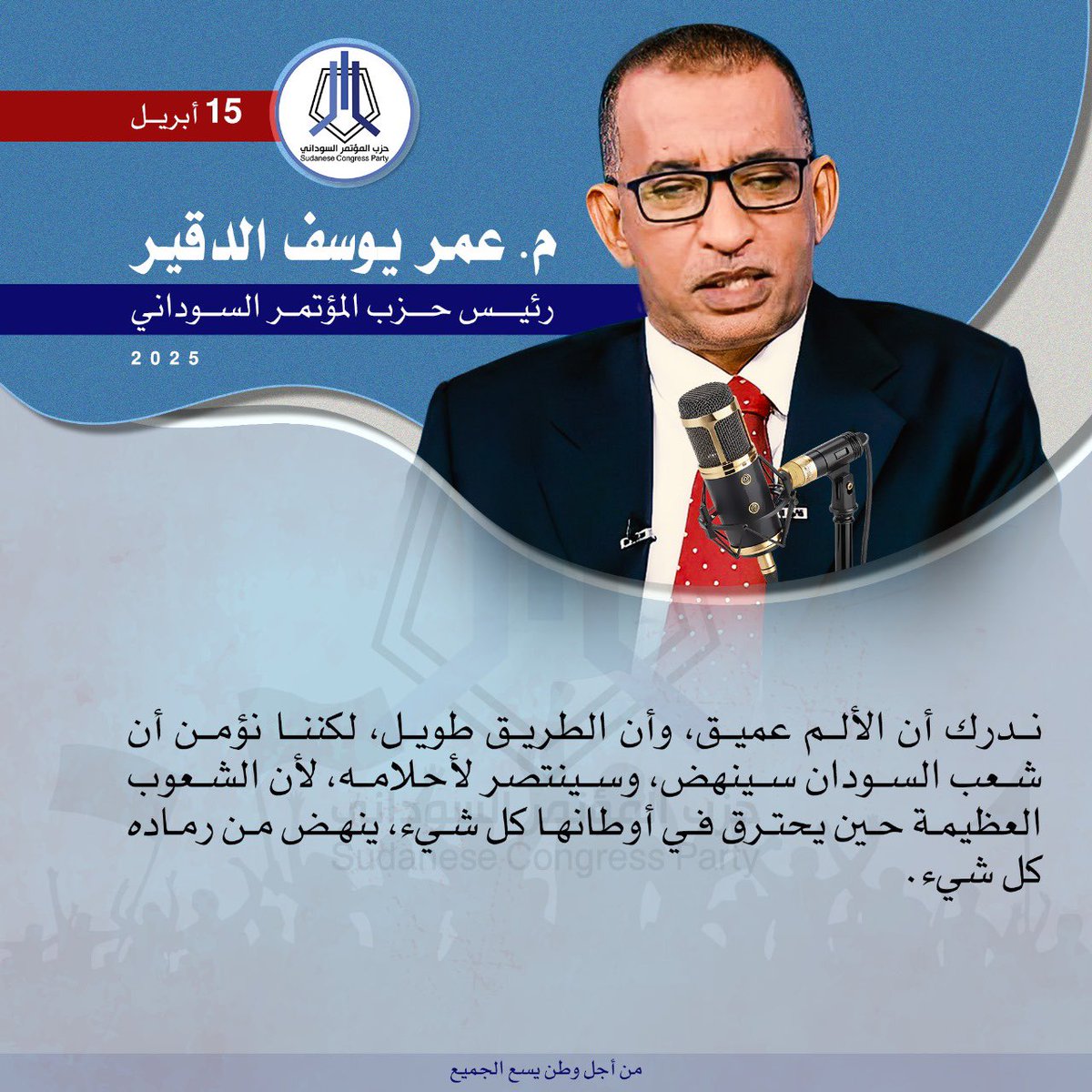 ندرك أن الألم عميق، وأن الطريق طويل، لكننا نؤمن أن شعب السودان سينهض، وسينتصر لأحلامه، لأن الشعوب العظيمة حين يحترق في أوطانها كل شيء، ينهض من رماده كل شيء.