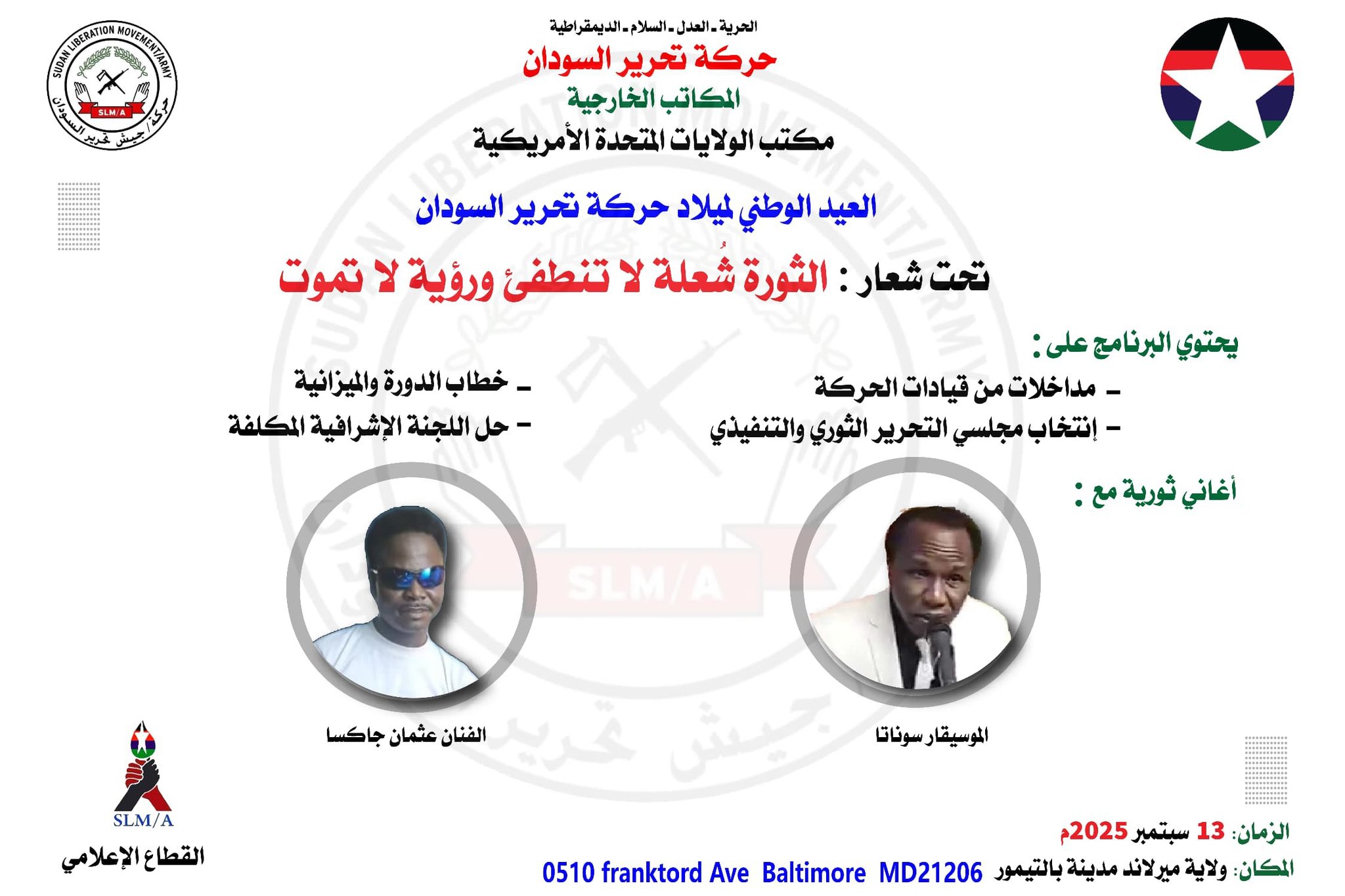 إحياءً لليوم الوطني وعيد شهداء حركة/جيش تحرير السودان، تنطلق فعاليات: