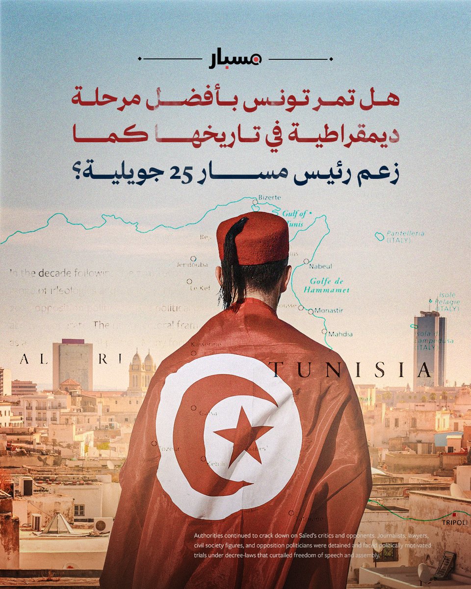 التصريحات تتعارض مع تقارير محلية وأخرى أممية دولية، أثبتت تراجعًا ملموسًا في الحريات والحقوق، رغم أن دستور تونس لعام 2022، نص على ضرورة احترامها وحمايتها من أي انتهاك.
