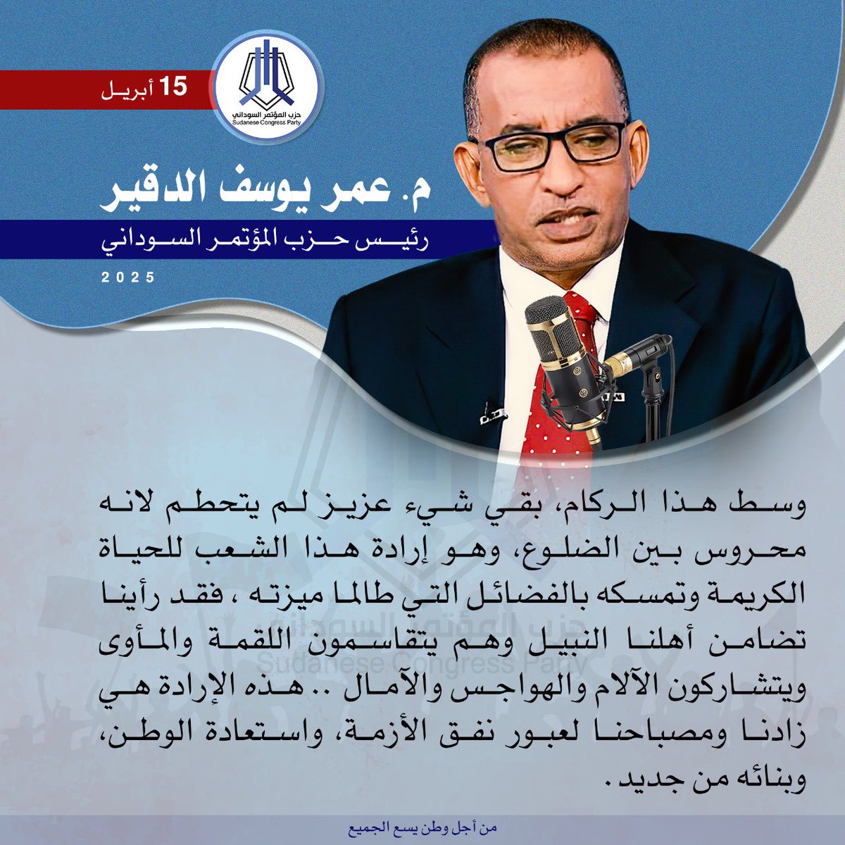 كلمة رئيس الحزب م.عمر الدقير @omereldigair بمناسبة دخول العام الثالث لحرب 15 ابريل