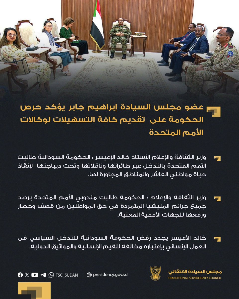 ⭕️ عضو مجلس السيادة إبراهيم جابر يؤكد حرص الحكومة على تقديم كافة التسهيلات لوكالات الأمم المتحدة