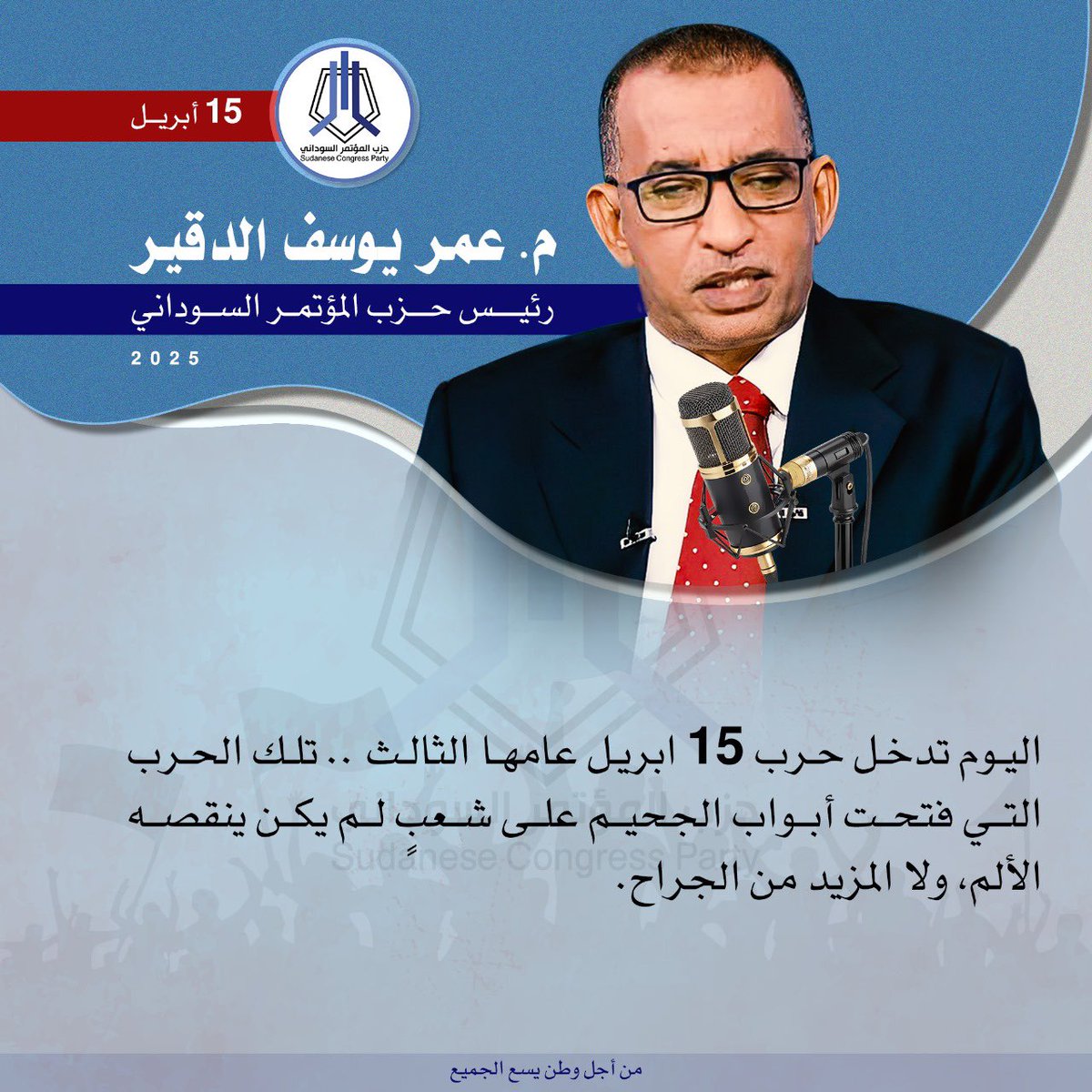 كلمة رئيس الحزب م.عمر الدقير @omereldigair بمناسبة دخول العام الثالث لحرب 15 ابريل