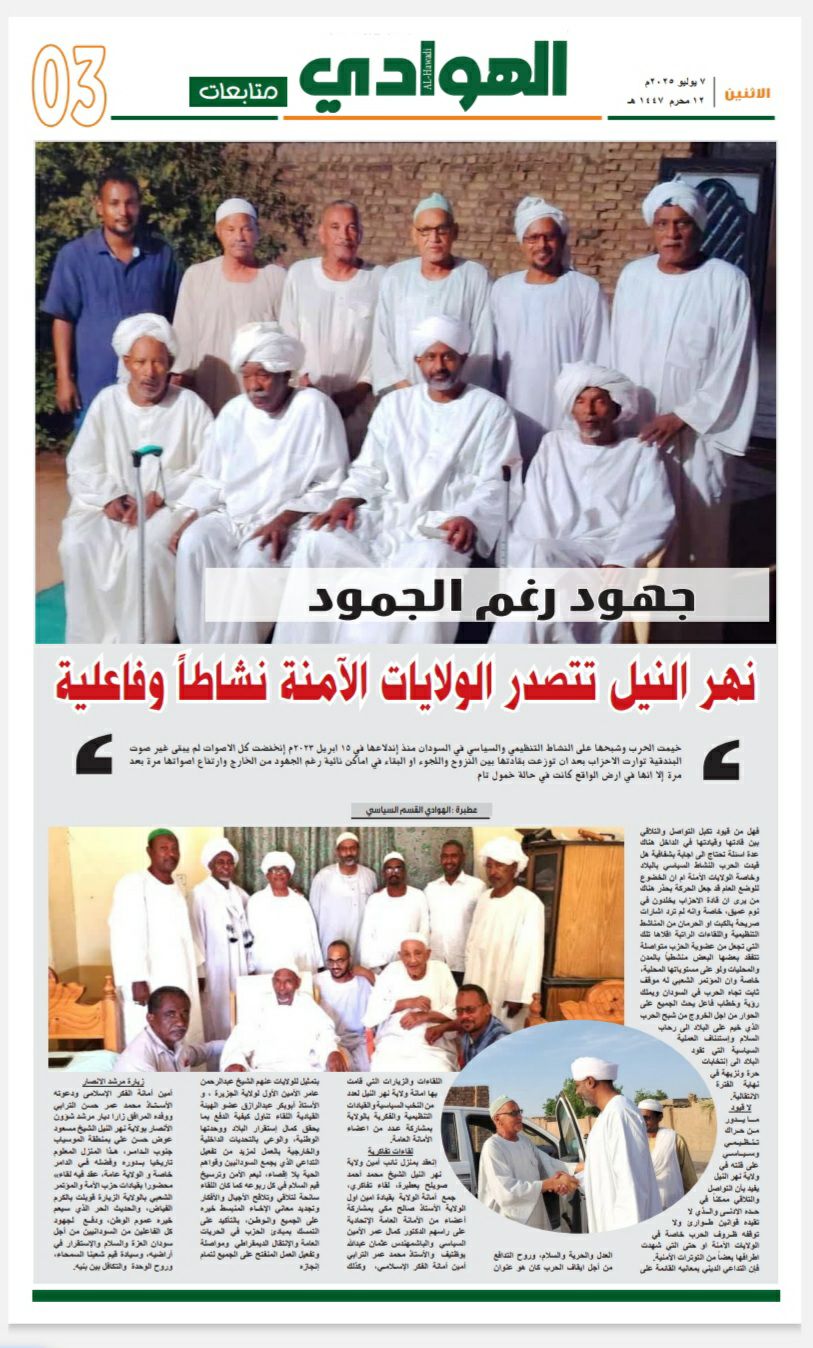 Uncategorized مناشط ولائية من نهر النيل By null Published July 11, 2025 Share SHARE Facebook Twitter Pinterest LinkedIn[ad_1] مناشط ولائية من نهر النيل [ad_2] Source Facebook Twitter Pinterest LinkedIn Share This Article Facebook Twitter Email Print Previous Article قذائف الدعم السريع تحرق مخازن منظمة برنامج الغذاء العالمي في الفاشر ، (WFP)وفي ذ… Next Article بيان صحفي مشتركلقاء مهم بين حزب الأمة القومي وحركة العدل والمساواة السودانية ي… Leave a Comment Leave a Reply Cancel replyYour email address will not be published. Required fields are marked *Comment * Name * Email * Website Save my name, email, and website in this browser for the next time I comment. Δ SearchSearchRecent Postsأكرمنا الله صباح اليوم الأحد بلقاء إخوةٍ كرام، على ضفة النيل الأزرق، حيث شاي الش… أعلن بنك السودان المركزي في منشور إدارة السياسات رقم (2025/15) رفع الاحتكار عن ا… ندوة بعنوان: القانون الدولي والسيادة الوطنية قراءة في موقف السودان من لجنة تقصي … والي نهر النيل تستقبل وزير الموارد البشرية والرعاية الاجتماعية الوزير يشيد بالأ… كامل ادريس: رئيس اللجنة السياسية لمؤسسات الدولة السودانية. Recent CommentsNo comments to show.