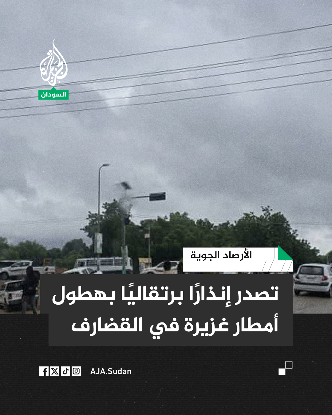 لهيئة العامة للأرصاد الجوية تصدر إنذارًا برتقاليًا شديد الخطورة بهطول أمطار غزيرة مصحوبة بعواصف رعدية على مناطق شرق ووسط وجنوب ولاية القضارف شرقي #السودان بدءا من مساء اليوم وحتى صباح الغد