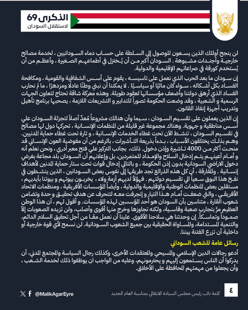 مالك عقار نص خطابي الى الشعب السوداني بمناسبة العام الجديد ١/٣ … By null Published September 11, 2025 Share SHARE Facebook Twitter Pinterest LinkedIn[ad_1] نص خطابي الى الشعب السوداني بمناسبة العام الجديد ١/٣ [ad_2] Source by Malik Agar Eyre | مالك عقار اير Facebook Twitter Pinterest LinkedIn Share This Article Facebook Twitter Email Print Previous Article LIVE: Trump Rally in New York, #NewYork … Next Article رئيس مجلس السيادة الانتقالي الفريق أول الركن #عبدالفتاح_البرهان يبعث برقية تهن… Leave a Comment Leave a Reply Cancel replyYour email address will not be published. Required fields are marked *Comment * Name * Email * Website Save my name, email, and website in this browser for the next time I comment. Δ SearchSearchRecent Postsأكرمنا الله صباح اليوم الأحد بلقاء إخوةٍ كرام، على ضفة النيل الأزرق، حيث شاي الش… أعلن بنك السودان المركزي في منشور إدارة السياسات رقم (2025/15) رفع الاحتكار عن ا… ندوة بعنوان: القانون الدولي والسيادة الوطنية قراءة في موقف السودان من لجنة تقصي … والي نهر النيل تستقبل وزير الموارد البشرية والرعاية الاجتماعية الوزير يشيد بالأ… كامل ادريس: رئيس اللجنة السياسية لمؤسسات الدولة السودانية. Recent CommentsNo comments to show.