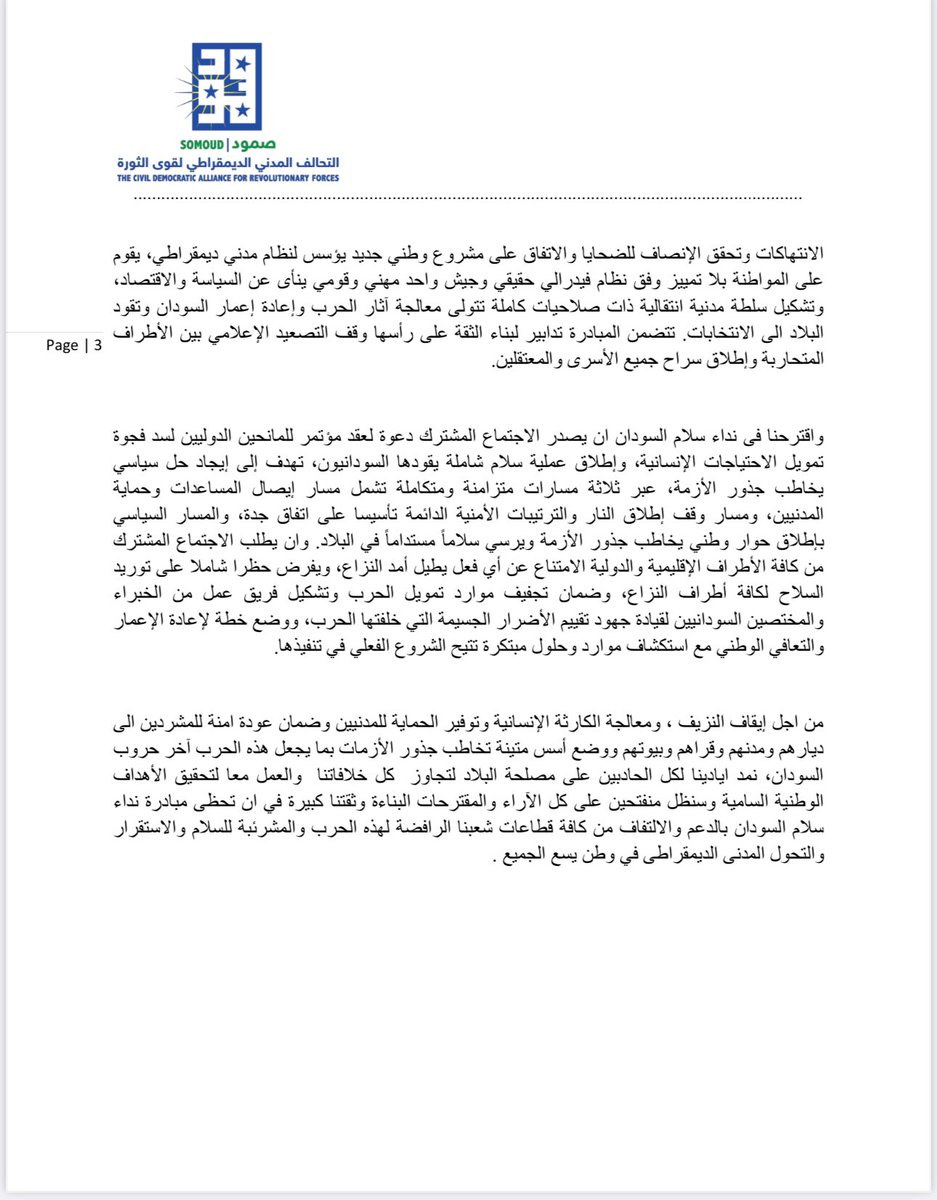 حزب المؤتمر السوداني رسالة الدكتور عبد الله حمدوك رئيس الوزراء السابق ورئيس تحالف صمود في الذكري الثا… By null Published September 11, 2025 Share SHARE Facebook Twitter Pinterest LinkedIn[ad_1] رسالة الدكتور عبد الله حمدوك رئيس الوزراء السابق ورئيس تحالف صمود في الذكري الثانية للحرب 15 أبريل 2025م [ad_2] Source by حزب المؤتمر السوداني Facebook Twitter Pinterest LinkedIn Share This Article Facebook Twitter Email Print Previous Article I want to reiterate: *There are no political parties in Sudan! Sudan has revolut… Next Article جانب من كلمتي امام استقبال قافلة تخفيف معاناة مواطني إقليم دارفور و القوة المشتر… Leave a Comment Leave a Reply Cancel replyYour email address will not be published. Required fields are marked *Comment * Name * Email * Website Save my name, email, and website in this browser for the next time I comment. Δ SearchSearchRecent Postsأكرمنا الله صباح اليوم الأحد بلقاء إخوةٍ كرام، على ضفة النيل الأزرق، حيث شاي الش… أعلن بنك السودان المركزي في منشور إدارة السياسات رقم (2025/15) رفع الاحتكار عن ا… ندوة بعنوان: القانون الدولي والسيادة الوطنية قراءة في موقف السودان من لجنة تقصي … والي نهر النيل تستقبل وزير الموارد البشرية والرعاية الاجتماعية الوزير يشيد بالأ… كامل ادريس: رئيس اللجنة السياسية لمؤسسات الدولة السودانية. Recent CommentsNo comments to show.